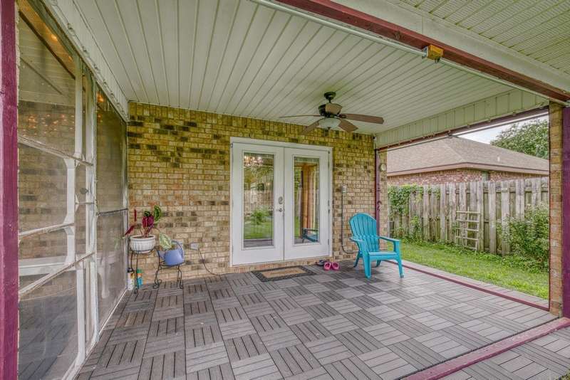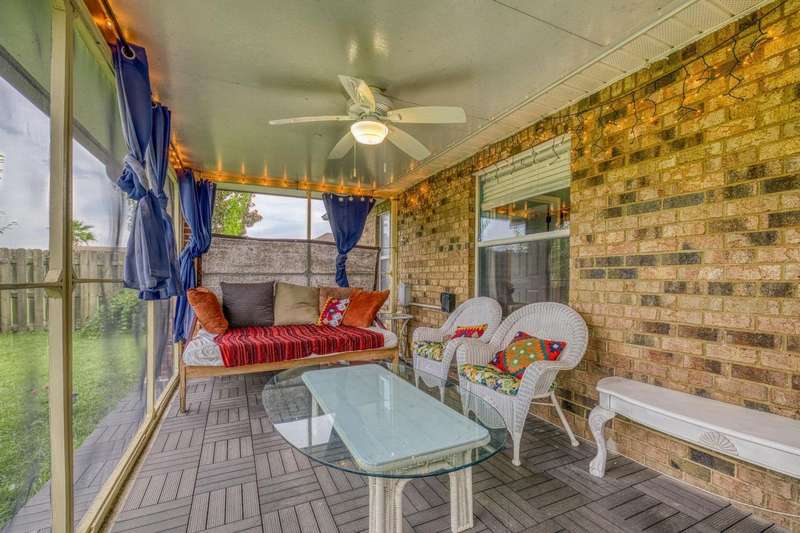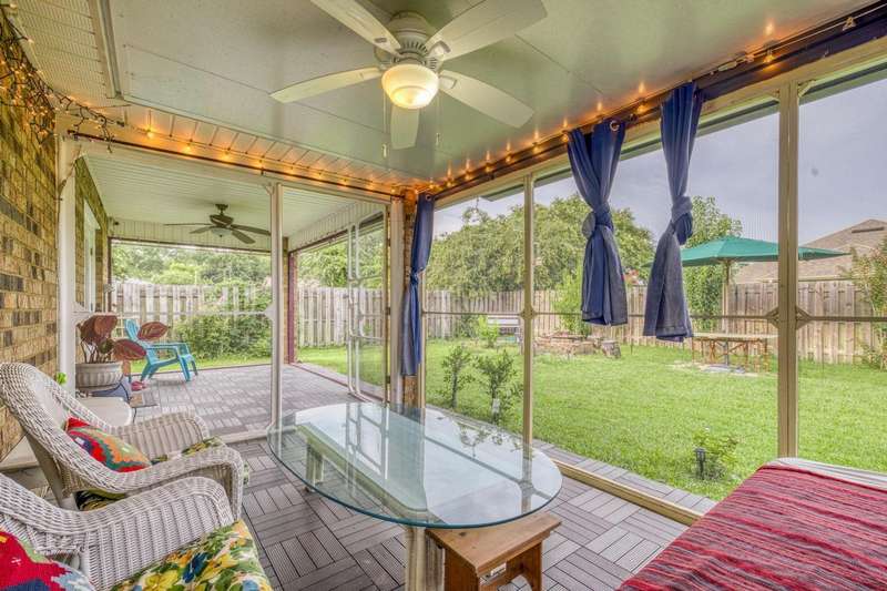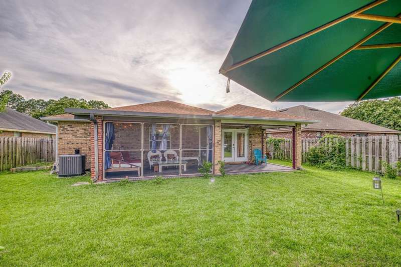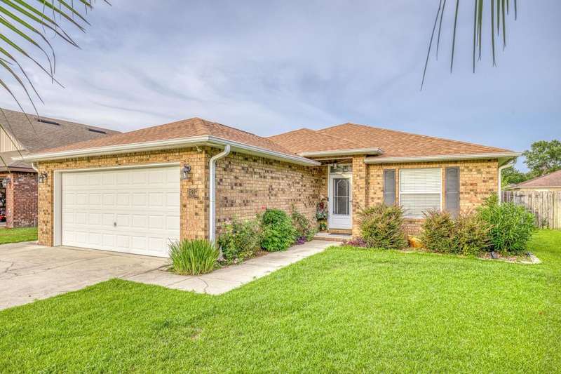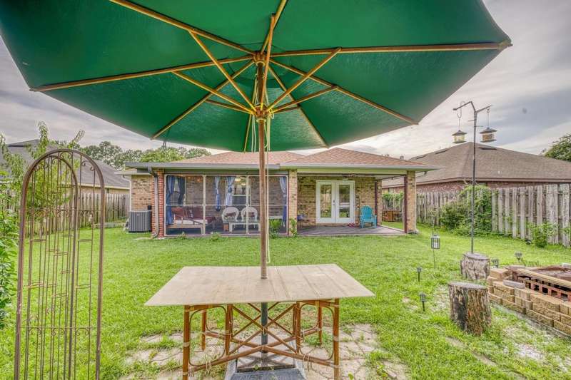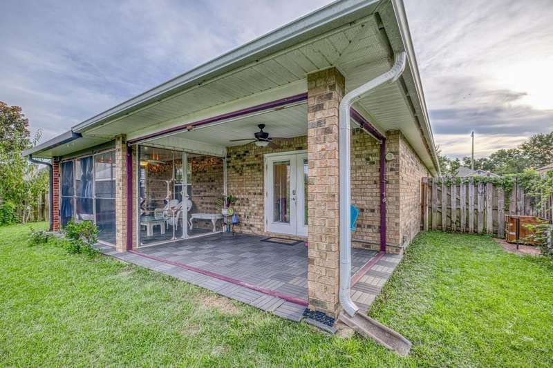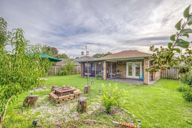 This beautifully cared-for 3-bedroom, 2-bath brick home offers comfort, convenience, and peace of mind with major updates already completeincluding a 2-year-old roof, HVAC system less than a year old, and a 2-year-old water heater. A lush, manicured front lawn and thoughtfully designed landscaping create strong curb appeal from the moment you arrive. Inside, the open-concept living area features high ceilings and easy-to-maintain tile flooring, creating a bright and inviting space that flows seamlessly into the dining area and kitchen. There's room for a full dining table, plus a breakfast bar perfect for casual meals. The kitchen offers stainless steel appliances, a large pantry, and ample cabinet space to keep everything organized. A split floor plan ensures privacy, with the spacious primary suite on one side of the home, complete with a soaking tub, separate shower, and walk-in closet. Two additional bedrooms and a full bath are located on the opposite sideideal for family or guests. Out back, enjoy the best of indoor-outdoor living with a large covered patio that's half screened-in for relaxing bug-free evenings, and half open to the backyardfantastic for grilling, entertaining, or soaking up the sunshine. The fully fenced yard offers plenty of grassy space, a firepit for cozy nights, and a yard building for extra storage. This home truly combines functionality, comfort, and charmready for you to move in and enjoy!