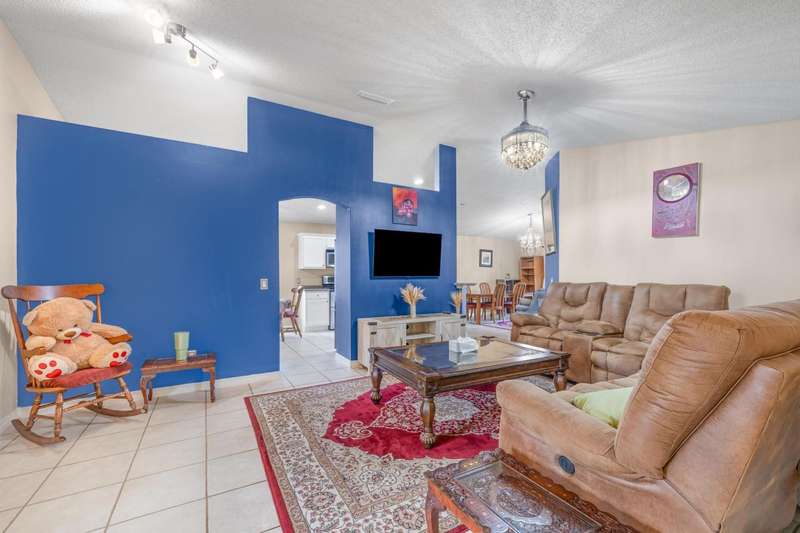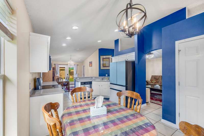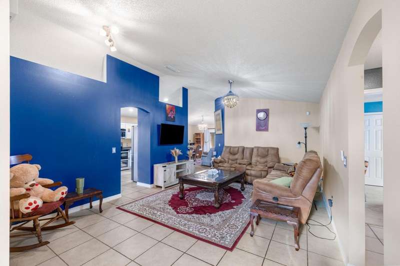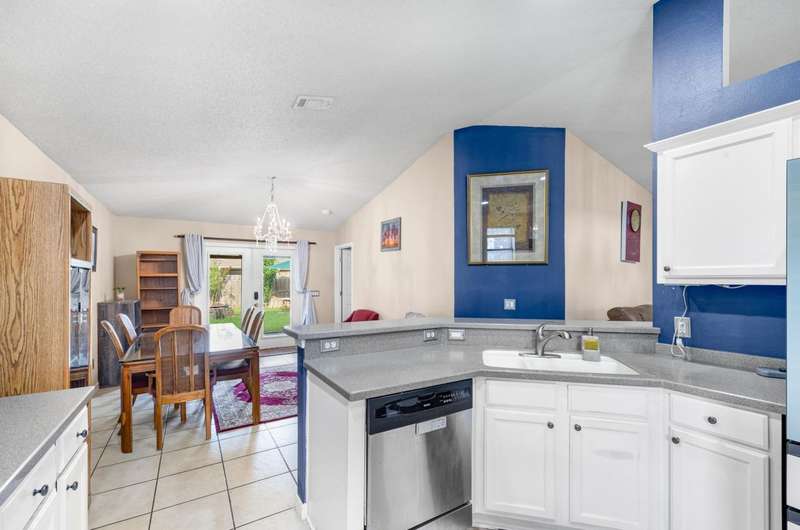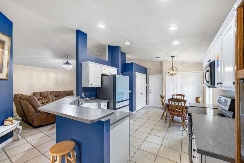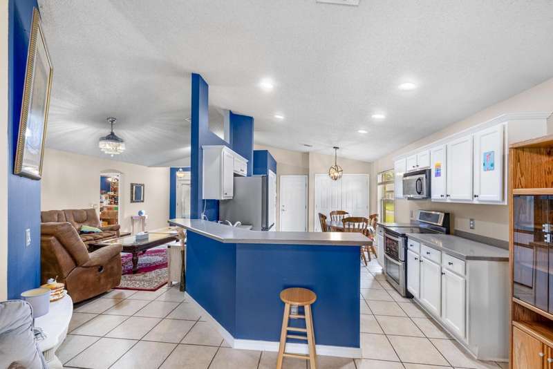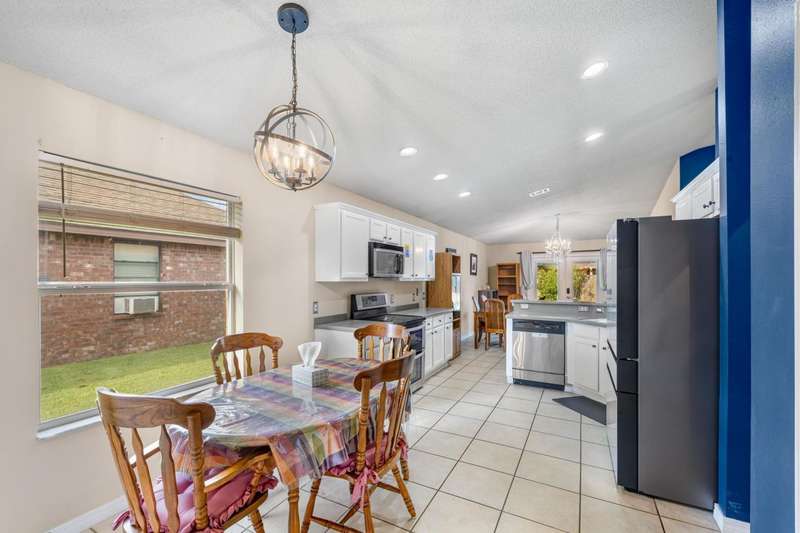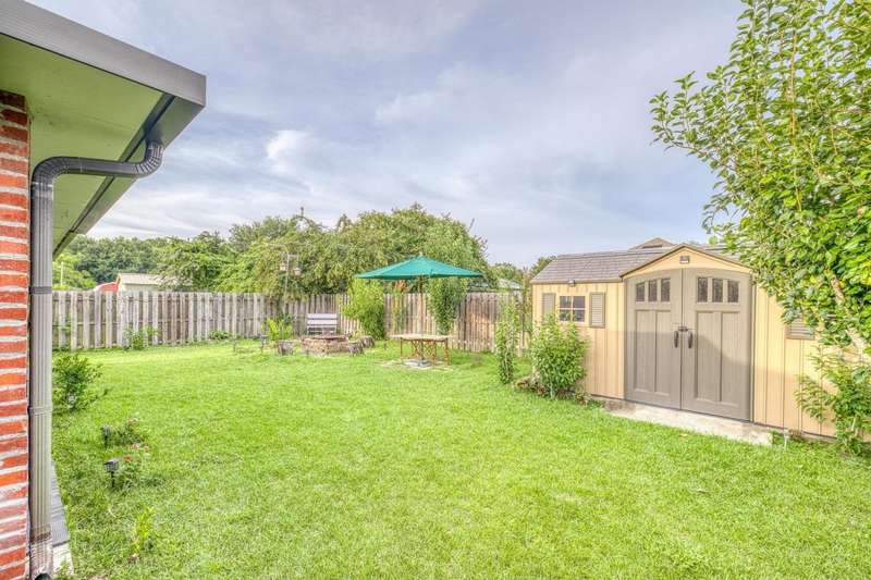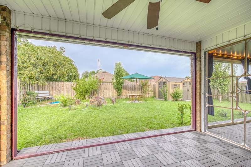 This beautifully cared-for 3-bedroom, 2-bath brick home offers comfort, convenience, and peace of mind with major updates already completeincluding a 2-year-old roof, HVAC system less than a year old, and a 2-year-old water heater. A lush, manicured front lawn and thoughtfully designed landscaping create strong curb appeal from the moment you arrive. Inside, the open-concept living area features high ceilings and easy-to-maintain tile flooring, creating a bright and inviting space that flows seamlessly into the dining area and kitchen. There's room for a full dining table, plus a breakfast bar perfect for casual meals. The kitchen offers stainless steel appliances, a large pantry, and ample cabinet space to keep everything organized. A split floor plan ensures privacy, with the spacious primary suite on one side of the home, complete with a soaking tub, separate shower, and walk-in closet. Two additional bedrooms and a full bath are located on the opposite sideideal for family or guests. Out back, enjoy the best of indoor-outdoor living with a large covered patio that's half screened-in for relaxing bug-free evenings, and half open to the backyardfantastic for grilling, entertaining, or soaking up the sunshine. The fully fenced yard offers plenty of grassy space, a firepit for cozy nights, and a yard building for extra storage. This home truly combines functionality, comfort, and charmready for you to move in and enjoy!