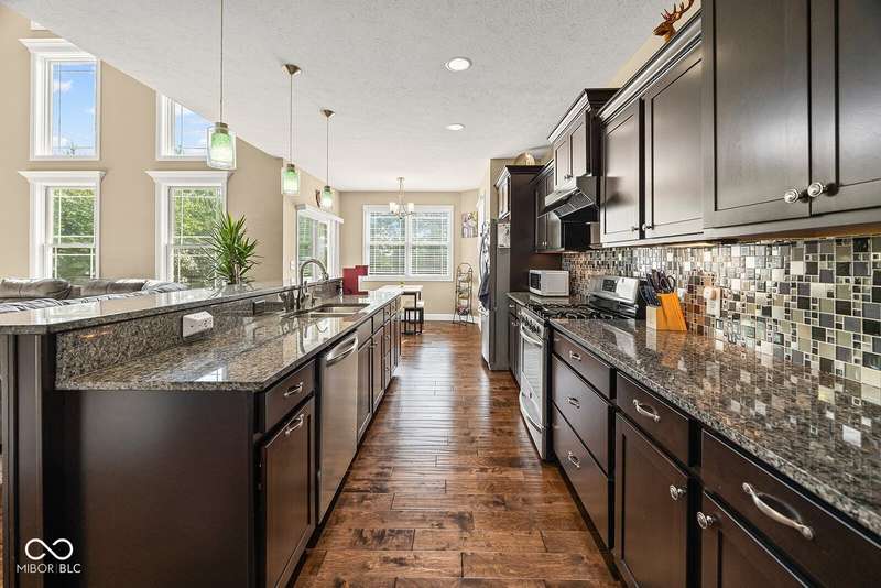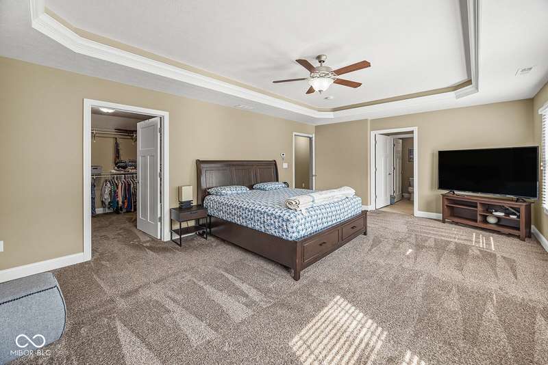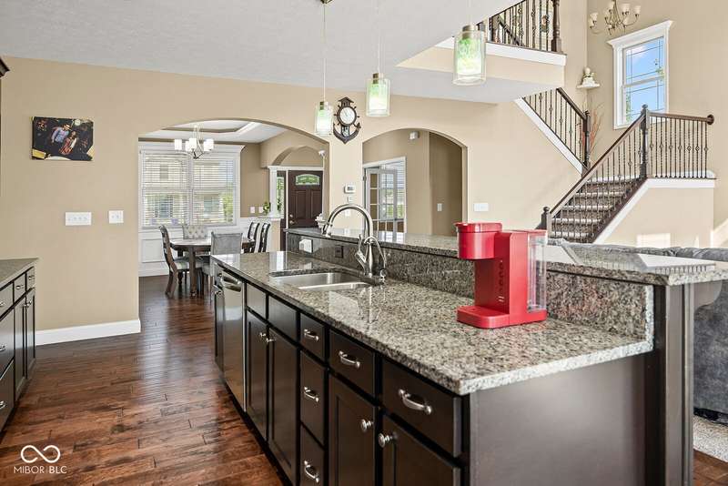 Discover this stunning, like-new home in the desirable Winding Creek community, offering 4,455 square feet of beautifully upgraded living space. With five bedrooms-including a spacious main-floor mother-in-law suite with a walk-in closet and full bath-this home is designed for comfort and versatility. The open-concept kitchen and living area features custom cabinetry, stainless steel appliances, a breakfast bar, and connects to a bright den with French doors and a formal dining room. Elegant details like arched entryways, wainscoting, tray ceilings, and decorative columns elevate the design. Upstairs, the expansive master suite includes a luxurious bath and massive walk-in closet, while a loft overlooks the great room. The finished basement boasts 9' ceilings, a large rec room, and an additional bedroom. A 3-car garage offers exceptional storage and organization. Additional upgrades include a 3-zoned HVAC system, whole-house reverse osmosis, new water softener, an irrigation system, and new fencing.
