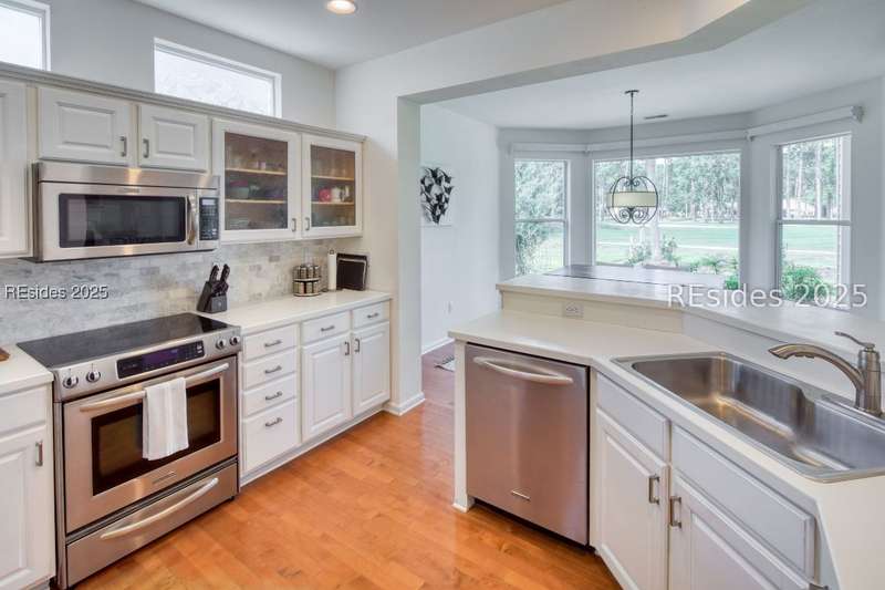 How would you like to wake up to this amazing golf view each morning?! This is the only double fairway view in Sun City Common, enjoy beautiful vistas of holes 15 and 16 on the newly renovated Okatie Creek golf course. Move in ready Hamilton Jefferson model has been meticulously maintained and a pleasure to show. The open floor plan offers 2 bedrooms (each with bay windows), 2 full baths, den/home office, large great room with gas fireplace, spacious dining room with bay window, and a fabulous kitchen with stainless steel appliances and updated backsplash. The separate laundry room is inside the home and is not a pass through from the garage. 2021 HVAC, plantation shutters in some rooms, hardwood floors in main living & bedrooms (no carpet). Enjoy the terrific views from the covered porch and extended patio, the perfect location for morning coffee or an evening cocktail. Reduced $15,000!
