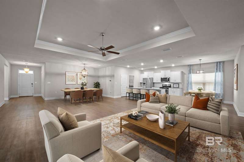 PRICED TO SELL $399,000 !- This beautiful 4-bedroom, 3-bathroom Destin 3 Car Garage Floorplan offers 2,453 square feet of comfortable living space and is listed at $419,000. Located at 24884 Smarty Jones Circle in Daphne, AL, the home features an open floor plan with high ceilings and plenty of natural light. The kitchen includes granite countertops, stainless steel appliances, and a large island perfect for entertaining. The spacious primary suite offers a walk-in closet, double vanities, a soaking tub, and a separate shower. Three additional bedrooms provide plenty of space for loved ones, guests, or a home office.Recent Upgrades include: Updated Lighting, Apoxy Coated front and back, SCREENED IN PORCH, wired for whole House Generator with Surge Protector as well as extra tall toilets!!. Enjoy access to Jubilee Farms' resort-style amenities including a pool, clubhouse, and walking trails. This is a must-see home in one of Daphne's most desirable communities. Buyer to verify all information during due diligence.