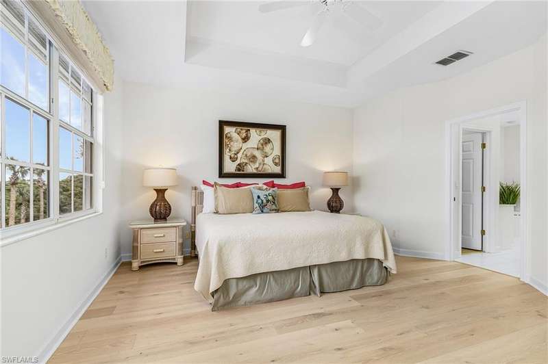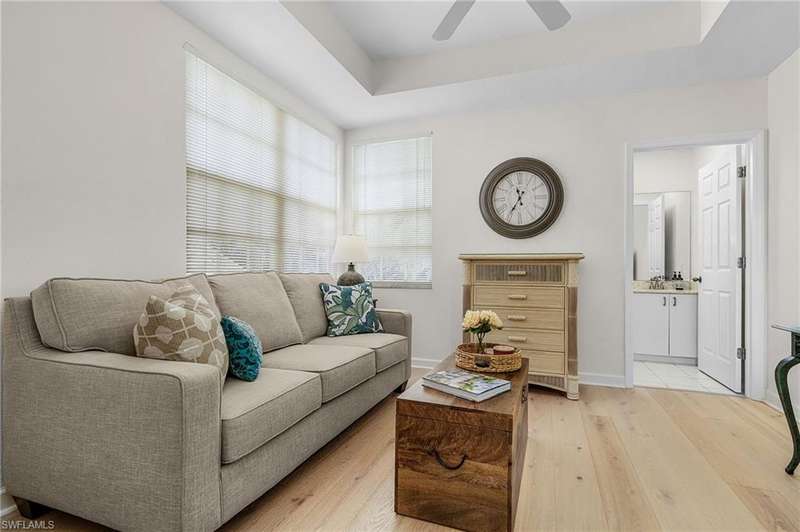 Opportunities like this rarely last in Pelican Landing, one of Bonita Springs premier resort-style communities. This light-filled 3 bedroom, 3 bath second-story residence offers the perfect blend of sophistication, comfort, and convenience. A vaulted ceiling and a wall of windows create an airy, sun-drenched great room where natural light dances across open living spaces. Skylights and sunset views over the golf course add warmth and serenity to every evening. The kitchen blends beauty and function with stainless steel appliances, and generous prep space perfect for entertaining or quiet mornings at home. Coastal d cor and turnkey furnishings mean you can begin enjoying the Southwest Florida lifestyle from day one. With a seasonal renter already in place for 2026, you ll begin ownership with built-in income and plenty of time to plan your own sun-filled stays in paradise. At Pelican Landing, every day feels like vacation! Pelican Landing's crown jewel is an amenity no other south