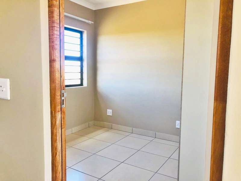 Welcome to this stunning 3-bedroom home in a brand-new development, offering a modern and functional design that’s perfect for families or individuals looking for a fresh start. Bedrooms: Each of the three bedrooms is fitted with built-in cupboards, providing ample storage space and a neat, organized look. Kitchen: The heart of the home is the stylish kitchen, equipped with built-in cabinets, a stove and oven, and a charming breakfast nook for casual dining. There is also designated space for a washing machine, making laundry convenient and hassle-free. Open Plan Living: The open-plan design seamlessly connects the kitchen and living areas, creating a spacious and inviting environment for entertaining or relaxing. Bathroom: The bathroom is spacious and thoughtfully designed, featuring a toilet, basin, bath, and a shower hanger for added convenience. Outdoor Features: The property includes a carport to protect your vehicle from the elements. The large yard is perfect for expansion, gardening, or creating an outdoor entertainment area. Fencing: The yard is partially fenced, providing some privacy while leaving room for customization. This property is perfect for first-time homeowners, families, or investors seeking a modern home with future potential. Don’t miss this opportunity to own a piece of this exciting new development!