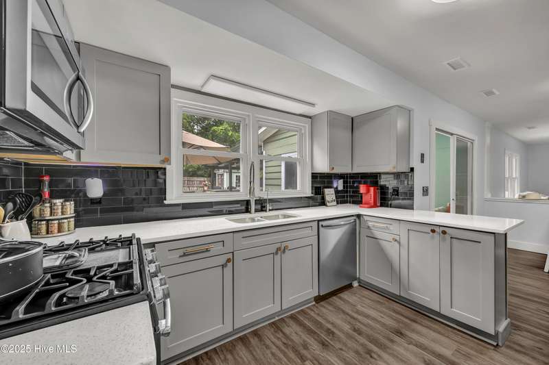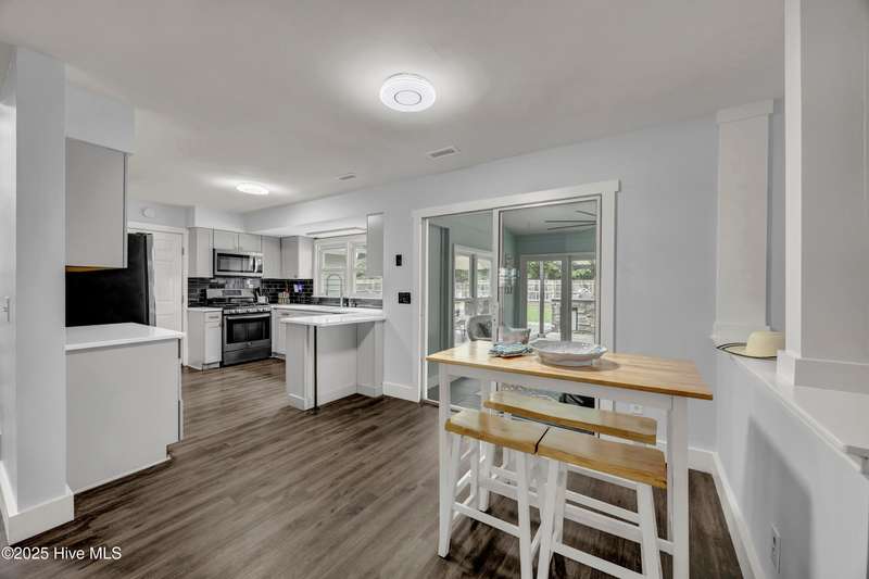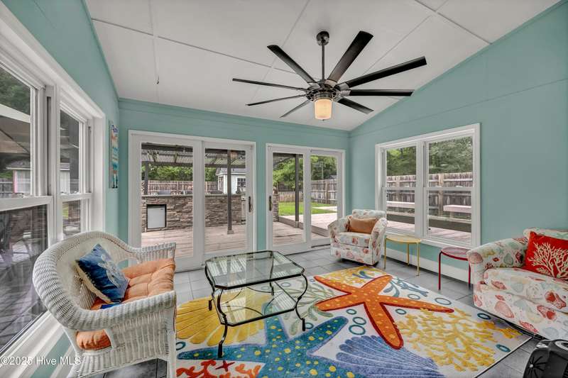 This spacious 4-bedroom, 2.5-bath home offers the perfect blend of comfort, style, and outdoor luxury. Nestled on an oversized lot, the property backs up to green space, ensuring lasting privacy and natural views.Inside, the updated kitchen features stunning quartz countertops, modern cabinetry, and stainless-steel appliances, making it a true centerpiece of the home. The open layout flows seamlessly into the main living areas. Step into your bright, relaxing sunroom and outside to your luxury outdoor kitchen with pergola. Enjoy nights in this expansive entertainment space, including a stone wall firepit patio, deck, additional patio and corn hole tournament area. The backyard offers ample room for gardening, play, or future expansion.Additional highlights include an attached 2-car garage, office, 3rd floor bonus room, and a LOCATION that can't be beat!!!! Just minutes from UNC Wilmington (1/2 mile walk!), Wrightsville Beach, Mayfaire Towne Center and the Cross City Trail, you'll enjoy quick access to coastal living, biking, and outdoor recreation.A rare find offering privacy, space, and convenience--schedule your showing today!