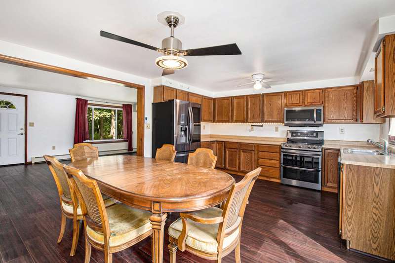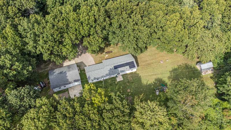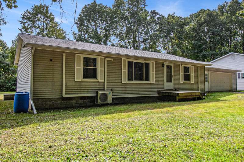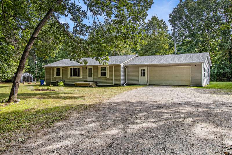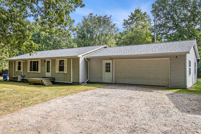Don't wait to see this great ranch home with a large heated pole barn on a private oasis! The 3 acre lot has the right balance of wooded perimeter for privacy and beauty, and sunny level lawn for peaceful relaxation, gardening, and more. Set far back from the quiet, private road, the home has a super functional 3-bed, 2 full bath floor plan with a huge attached 2+ car garage with extra storage room. Large 30'x45' heated pole barn with concrete floor (& parking pads in front and rear) and two 11'Hx16'W overhead doors - the perfect structure for serious work, fun play, RV/boat storage and more. This highly efficient home has very low utility bills thanks to the Generac solar array with battery backup system ('21), new Retro Foam insulation in the crawlspace, and in both the house and garage walls and attic, new insulated windows, newer electric heat pump mini-split systems (3) for ancillary heating/cooling. Other updates include new ('21) roof with warranty, upgraded electrical... ...system, new hot water heater with warranty, new patio and front door, new LG microwave, new washing machine, plus newer LG S.S. oven and high end fridge. Newer low-maintenance luxury vinyl flooring in the kitchen and living room.