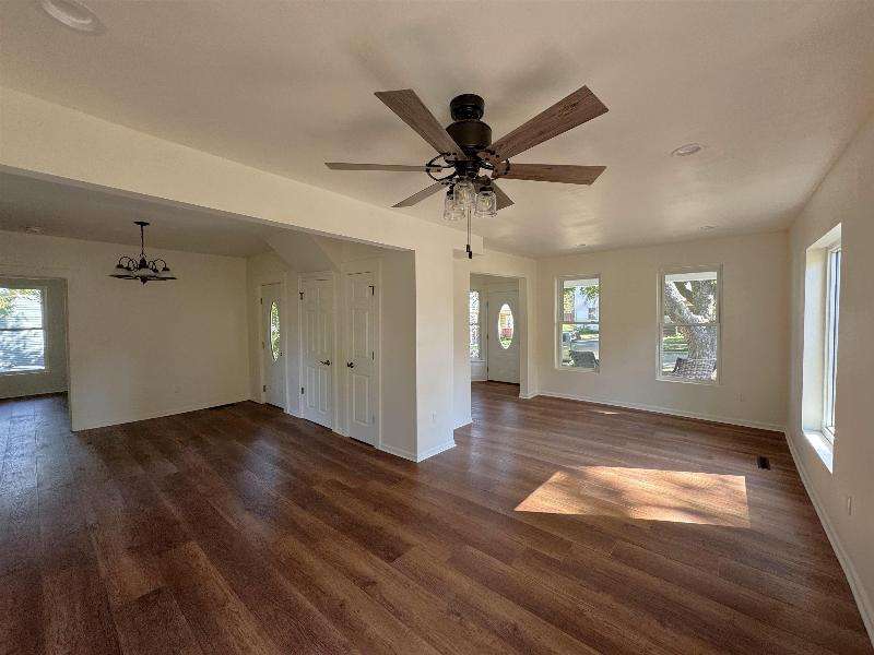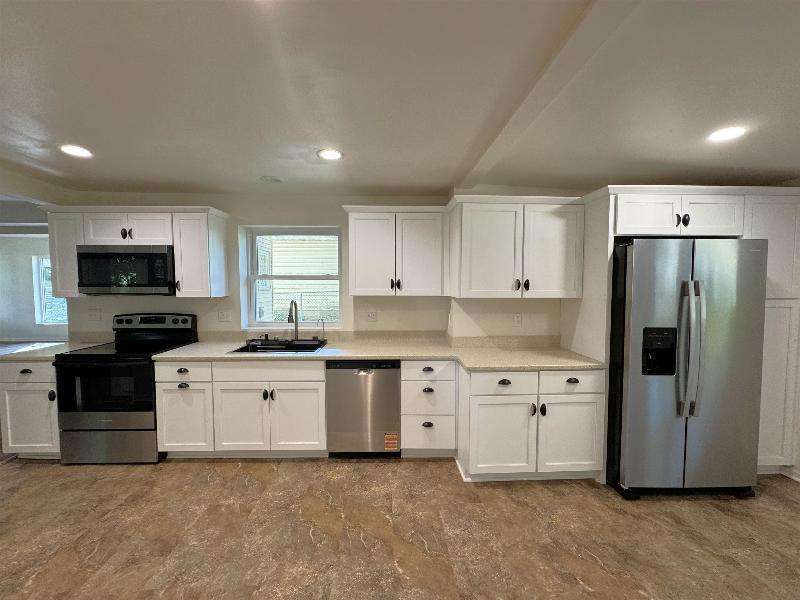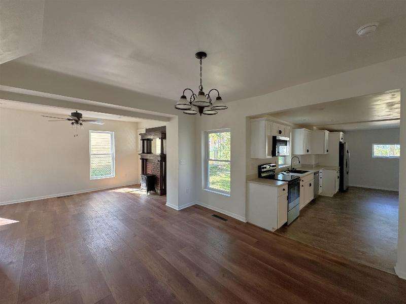 Almost like new! This home has undergone complete renovation - new wiring, plumbing, central air, windows, gutters and downspouts, concrete porch floor and exterior doors. The kitchen has also been remodeled and features new appliances, and the two bathrooms have been updated as well. Interior doors and flooring are new, and the interior has been repainted. The garage was updated with a new roof, door and windows. Get ready to move right in!