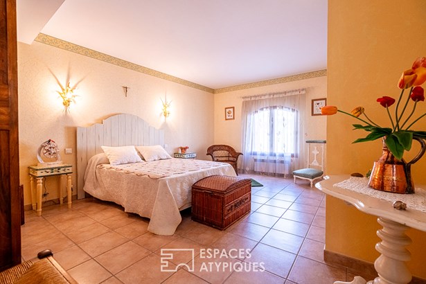 The tone is set from the moment you enter: generous volumes, high ceilings, and an industrial feel make this building an exceptional living space, just 10 minutes from Perpignan.