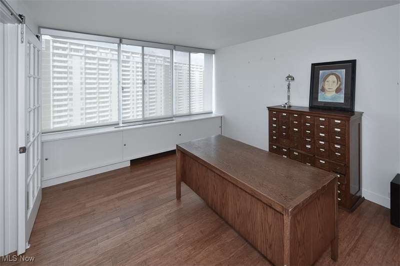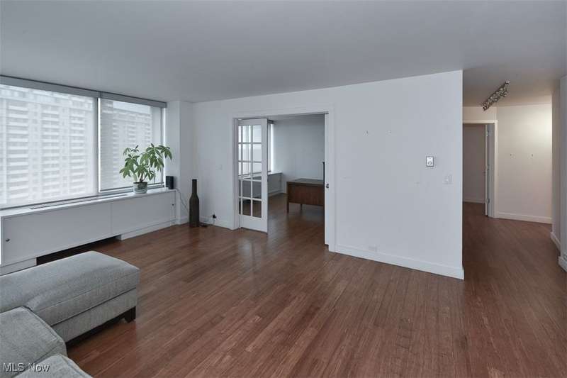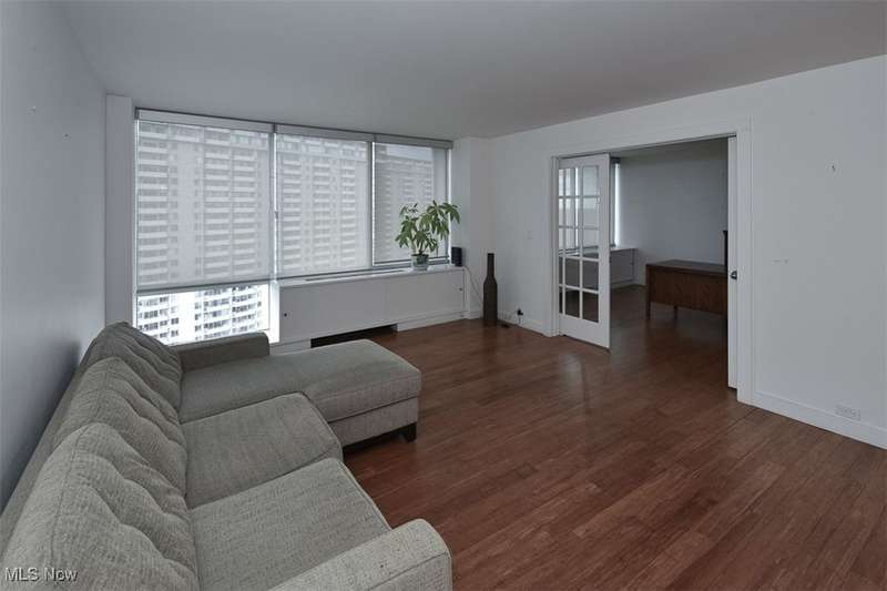 Fantastic location with modern amenities! Fully renovated unit in 2015. Due to French-style rolling doors between living room and den, you have a wonderful westerly view from dining/living rooms that takes in some city and lake views all at once! You can see the lake very well from the large master bedroom as well! Bamboo flooring is neutral and durable! Off the remodeled full bath with newly installed rolling glass shower door. Your own combo washer/dryer so you can do laundry in-suite! Kitchen features sleek, flat panel cabinets and stainless appliances (refrigerator and dishwasher in 2024). California closets added throughout unit. Windows feature automatic shades to adjust your lighting at times of day, and for breathtaking sunsets! Your only utility bill is electric for lights and appliances. Even internet is included! Community is the premier lake front residence of the Gold Coast - walk to Pier W, enjoy the outdoor wine deck & fire pit, swim, play tennis-pickleball-basketball, or workout in your state of the art fitness center with all recently purchased equipment! There is no finer living on the lake!