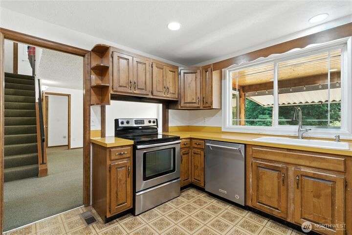 Sellers have reduced price to below tax assessed value! Bring your vision & transform this spacious home into a riverfront retreat you’ve dreamed of owning. Located @ end of peaceful cul-de-sac, property offers 89 feet of river frontage- perfect setting for rafting, fishing, or simply enjoying the serene water views. The home features a generous floor plan w/large living spaces, a primary suite overlooking the river, & ample room for customization. Whether you’re an investor, a contractor, or a homeowner with a vision, this is a rare chance to own a waterfront property on the Green River adjacent to lush wooded hillside. Large lot w/ covered back patio & plenty of room for gardening, yard games & simply enjoying nature.