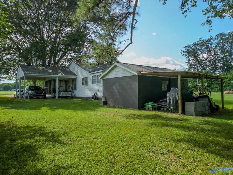 Welcome to your new home. This well-maintained ranch-style home sits on a flat 1-acre lot in the heart of Woodville. This home offers timeless character, a traditional layout blended with classical and new fixtures. The kitchen features added built-ins for extra storage and charm, with large windows to draw in natural light. Rewind inside the screened-in side porch and don t miss the detached shed with power and a well; perfect for projects or additional storage. The attached carport offers sheltered parking. Centrally located between Scottsboro and Huntsville, this home is perfect for those who want small-town charm with quick access to everyday conveniences and amenities. Come see this home today!