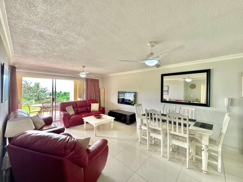TURN-KEY READY!!! Ground Floor Apartment with Lagoon & Sea Views SOLD FULLY-FURNISHED! Step into effortless coastal living with this fully furnished, move-in-ready apartment in popular Uvongo. Situated on the ground floor, it opens onto a spacious covered patio and beautifully maintained lawn, ideal for soaking in tranquil lagoon and sea views. Inside, you?ÇÖll find an open-plan kitchen with granite countertops, ample cupboard space, and a breakfast bar ?Çö all flowing into the lounge and dining area with sliding doors leading out to the patio. The apartment features three well-sized bedrooms with built-in cupboards and ceiling fans. The main bedroom includes an en-suite bathroom with a shower, basin, and toilet. A second full bathroom offers a shower, bath, basin, and toilet ?Çö perfect for family or guests. This unit is already a successful holiday rental with returning visitors and great income potential. Located in the secure and sought-after Laguna La Crete complex with direct beach access, two swimming pools, tennis court, braai areas, trailer parking, laundry facilities, a borehole, and water tanks. Just bring your bags ?Çö the coast is calling! Call or WhatsApp us to book your viewing today!