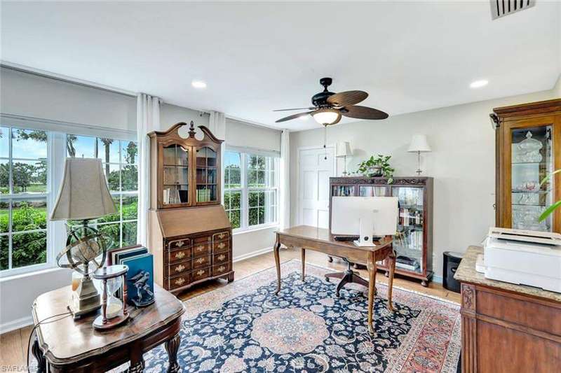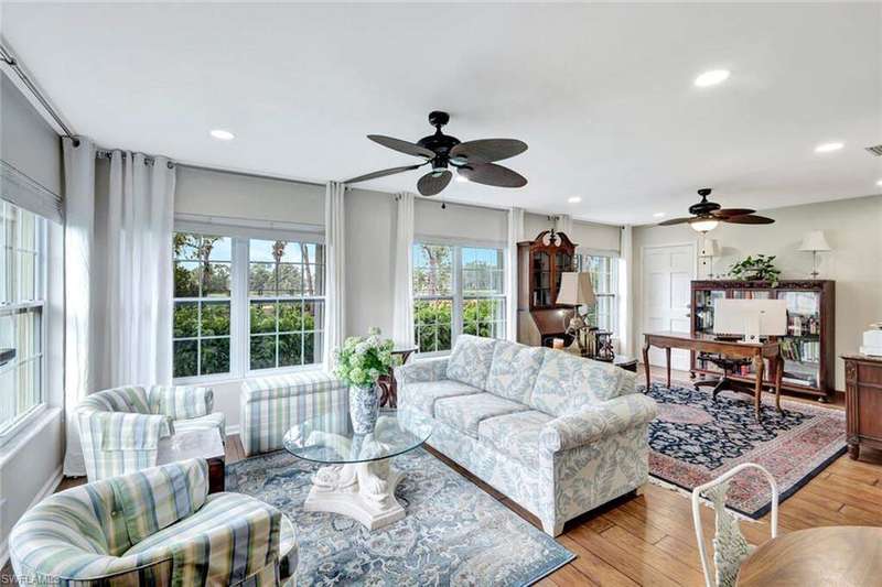 This beautifully maintained first-floor end unit offers 2 bedrooms, 2 bathrooms, and over 1,400 square feet of living space. Enjoy expansive views of Cypress Lake Golf Club right from the comfort of your living room, filling the home with natural light! Whether you're enjoying a quiet morning coffee or entertaining friends, this light-filled setting creates a serene and inviting atmosphere. The kitchen has been thoughtfully updated with new cabinets and appliances. Additional upgrades include plank vinyl flooring throughout the main living areas, tile in the remaining spaces, custom accordion blinds, updated light fixtures, and a brand new air scrubber. You'll appreciate the generous storage options throughout the condo, including large closets in both bedrooms, a spacious utility room with in-unit laundry, and an additional private storage room located just outside the unit. Stratford Place is a welcoming 55+ community centered around a unique island oasis with a pool and clubhouse, perfect for social gatherings. Residents also enjoy lakeside amenities including shuffleboard and BBQ grills. Located in the heart of South Fort Myers, you're just minutes from SWFL's best beaches, RSW Airport, spring training stadiums, shopping, dining, and more. Best of all-this condo has never flooded and comes equipped with hurricane shutters, offering peace of mind year-round.