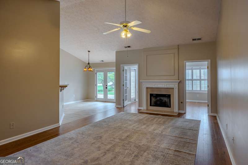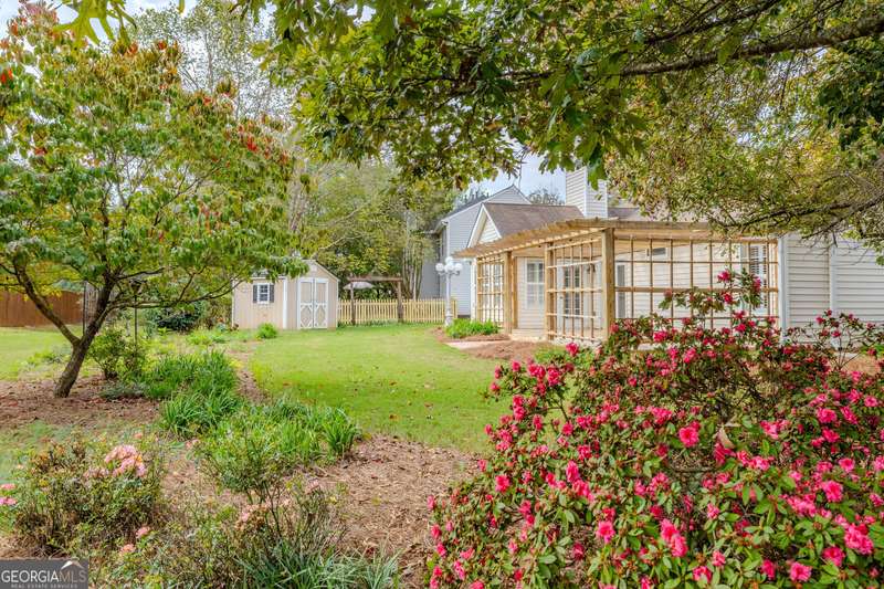 Beautifully maintained 4-bedroom, 2-bath ranch-style home featuring a freshly painted interior and hardwood floors throughout the main living areas. The kitchen boasts tile flooring and opens to a bright sunroom, perfect for morning coffee or quiet afternoons. Enjoy cozy evenings by the gas-log fireplace or entertain guests in the inviting open layout. The spacious master suite offers a relaxing sitting area, walk-in closet, and a luxurious bath complete with double vanities, granite countertops, a separate garden tub, and shower. A split-bedroom floor plan ensures privacy for family or guests. Step outside to a peaceful patio surrounded by beautifully landscaped gardens and a convenient storage building. Ideally located less than a mile from shopping, dining, churches, and the hospital-this home perfectly combines comfort, charm, and convenience!!