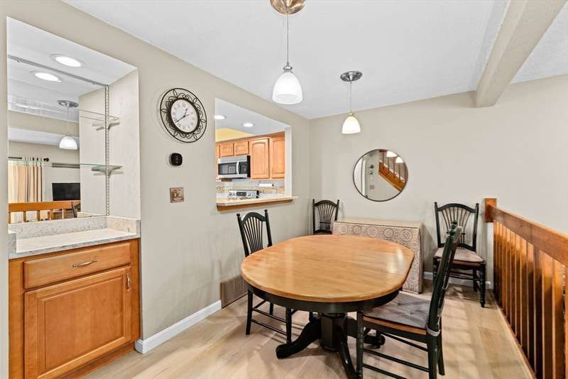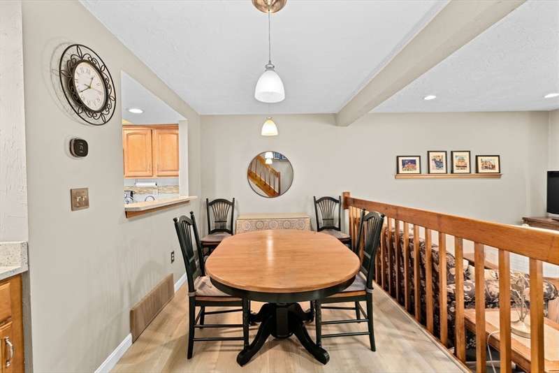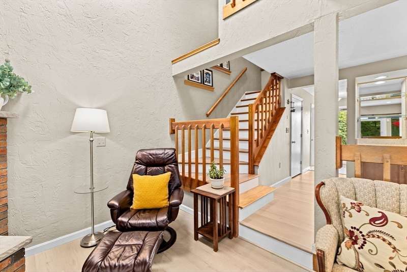 Location, Location, Location! This beautifully updated and maintained unit is in my opinion in one of the best spots in the Pine Brook East community. Set back away from Pleasant Street backing up to a private wooded area. This unit has so much to offer with high ceilings, luxury vinal flooring, updated kitchens & baths. Open floor plan with a fireplaced sunken living room and slider to an oversized deck for entertaining or just relaxing to enjoy the change of seasons. Full basement with pantry closet, washer and dryer and lots of storage. In addition to the many updates over the years there is a new (2024) Heating and Air Conditioning system. Great Commuter location being close to bus to Quincy, commuter rail to Boston, highway access, Jackson Square, South Shore Hospital, restaurants & shopping.
