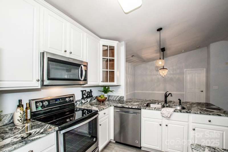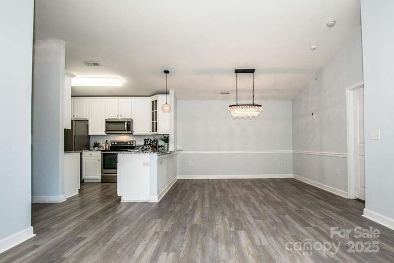 ANNOUNCING: A PRICE ADJUSTMENT and a THIRTY FIVE HUNDRED DOLLAR ($3,500) CREDIT to use towards a rate buydown or other closing costs! Enjoy high ceilings, stylish updates and no residents above you in this penthouse condominium near Birkdale Village. Other features include Tranquility Resilient LVP flooring, designer-style lighting and an open floor plan. In the Kitchen are pristine-white cabinets, striking granite counters, a breakfast bar and SS appliances (including the refrigerator). In the Dining Area is a fabulous chandelier and in the Great Room, a vaulted ceiling and fireplace. Outside the Great Room is a covered balcony with a park-like view. The Primary BR has a vaulted ceiling, walk-in closet and en suite with tiled shower. PLUS: a 2nd BR, 2nd Bathroom, Bonus Room/Office and dedicated Laundry Room (including the washer and dryer). The HVAC unit was replaced in 2019, water heater in 2022, and roof in 2022. Community amenities include a pool, clubhouse, fitness center, bike trail, Greenway and path to restaurants, shops and entertainment!