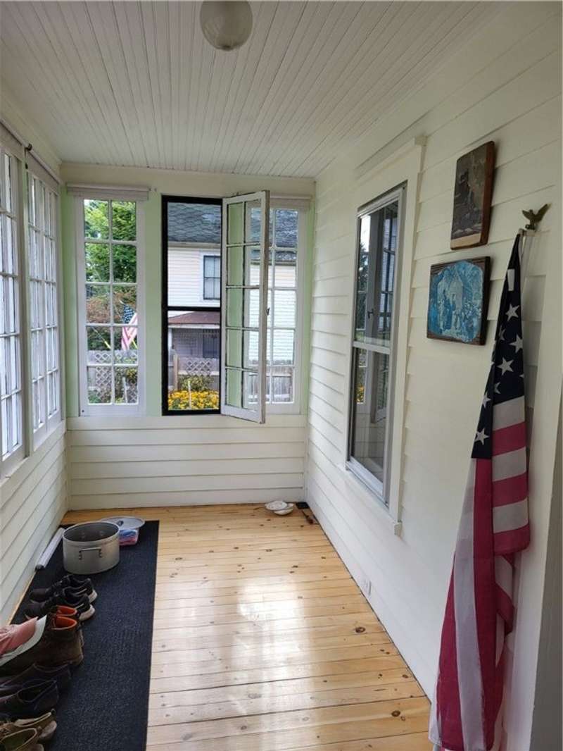 Nice Village home within walking distance to Main Street and most of the commercial and business locations. The home has had lots of upgrades but still retains a lot of the character of the past. You will find original woodwork, beautiful staircase, windowed Florida room and more. The first floor provides an open architecture for the kitchen and family room. The bedrooms are all centrally located on the second floor with the full bath and a central landing that they all open onto. There is an unheated enclosed front porch that doubles as a Florida room during three seasons of the year. In addition, the property has a detached garage, fenced in private yard and currently an array of small garden plots filled with flowers and vegetate plants. Easy to reconfigure to whatever your taste.