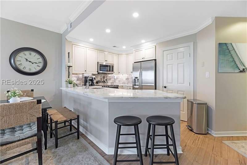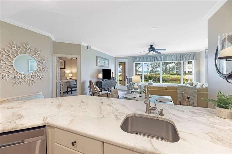 Beautifully updated first floor condominium offering gorgeous water views and effortless island living. Perfectly situated in a private, quiet community on Hilton Head Island, once you step inside you'll discover an abundance of natural light and updating that blends modern upgrades with the natural beauty of its coastal surroundings. The primary suite overlooks the water, offering tranquil views to start and end your day, along with an updated en-suite bath. A spacious screened-in porch invites you to unwind and enjoy breezes off the intracoastal waterway, with easy access to the dock just outside your door.