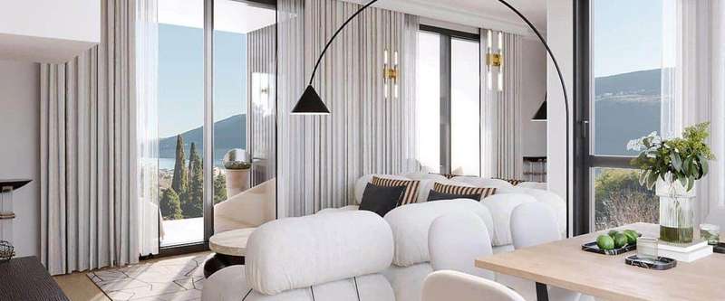 This modern, newly built three-bedroom apartment is located in the Star Serenity residential complex in Kumbor, just a mere 6 km from Herceg Novi. The complex is in the embrace of the sun and sea, away from the city noise and bustle. This complex impresses with its peaceful atmosphere, stunning natural beauty, and crystal-clear water. Unspoiled beaches and panoramic views of the Bay of Kotor create ideal conditions for vacation and accommodation.