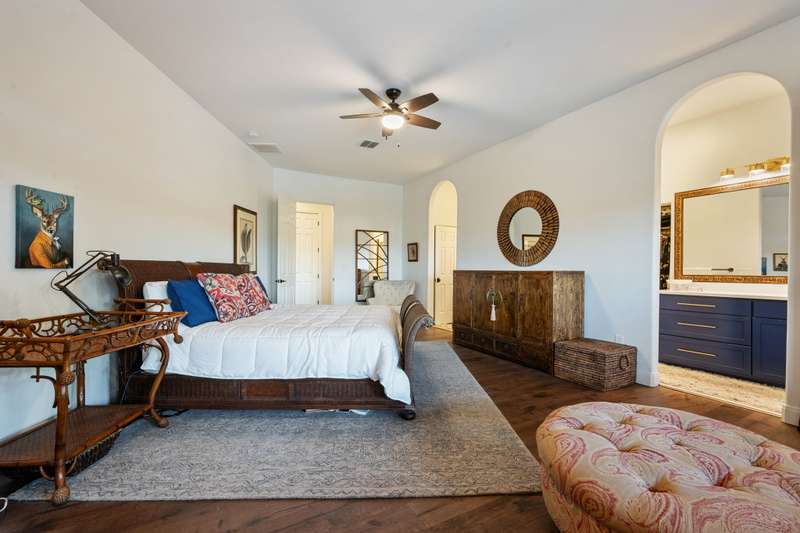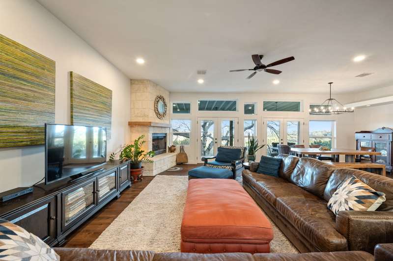 Dreaming of life on the gorgeous Guadalupe River? 124 Hoskins Trail in River Mountain Ranch is comprised of 15.32 Acres with over 200 ft of River frontage. This Spacious one story home has been re-imagined/re-built to encompass almost 3900 s.f. with abundant windows and covered deck overlooking the Guadalupe River Valley. Featuring a split floorplan, Study, wood floors and 2 woodburning fireplaces, this home is ready for the classic Hill Country lifestyle. The Open Floorplan is great for hosting and entertaining with a large Flexible Dining Area, Living Area, Breakfast and Kitchen. The Kitchen features a nice island, granite counters, lots of cabinetry plus access to a large Butler's Pantry/Utility Room. The Primary Suite has outside access to back porch overlooking views of the pool and the valley and offers a woodburning fireplace, nice bathroom w/walk-in shower & dual sinks. The Dining area is flexible and is 2 story w/clerestory windows, built-in shelves and gallery wall space for art. Four additional bedrooms each share a jack and jill bathrooms, 2 of the bedrooms offer outside access, while 2 of the bedrooms have built-in window seats and shelving with walk-in closets. The home was rebuilt in 2020 (owner's choice and vision) with recent standing seam metal roof, Hardiboard siding and Limestone. The Pool overlooking the river valley was added in 2021 and is the perfect spot to cool off. There is a 2000+ s.f. Workshop with 2x 14' Roll Up Doors, 18' High Center Height, Covered Parking spaces and Lean-to sheds and a RAINWATER CATCHMENT & Filtration system w/14k gallon of water storage (in addition to the water well). ** Enjoy the low taxes here as the owner maintains an agricultural exemption for Bee-keeping.** The River front and pasture is accessible by a pretty road for easy access. There is a Pecan grove in the River Pasture just like in the old days of Boerne in addition to cypress lined river embankment. Located in popular River Mountain Ranch feeding into the outstanding Boerne School System, the neighborhood offers 3 Parks (2 River Parks and Spring Creek Park) plus plenty of meandering roadways for walking, bike riding or driving your ATV. Homes on the Guadalupe River in the Boerne ISD are rare and valuable...don't miss out! - 11/10/2025 3:17:27 AM