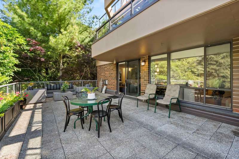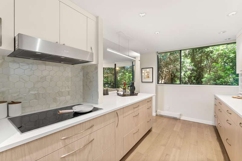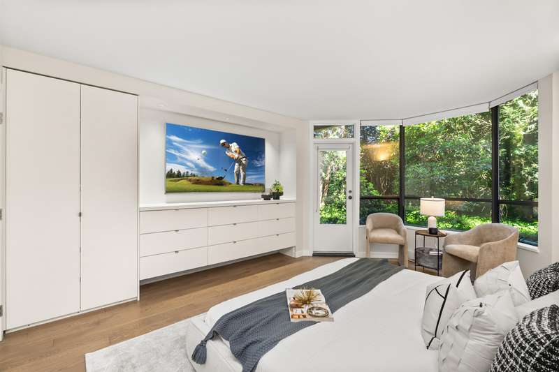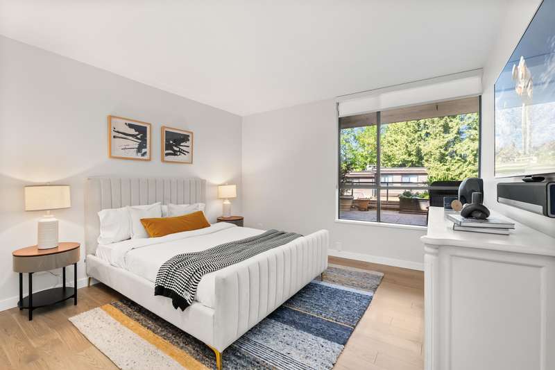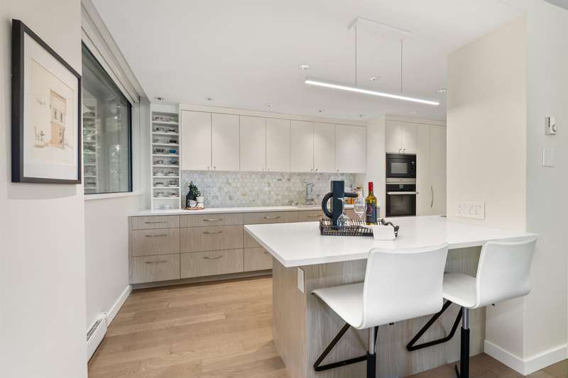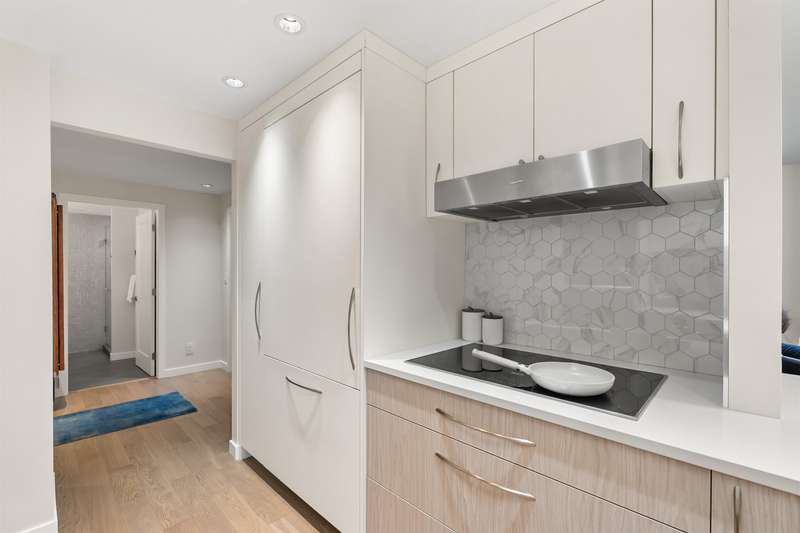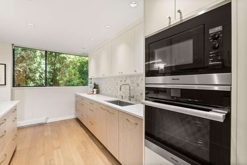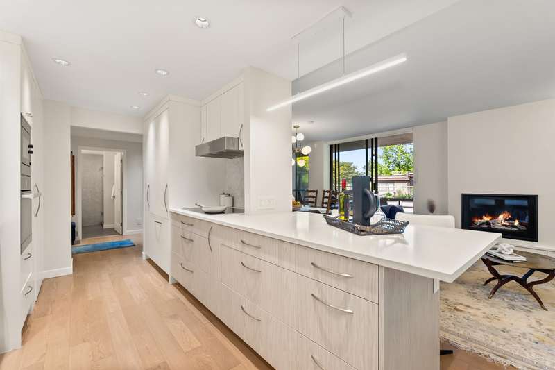 A rare offering of thoughtful design & timeless quality. This extensively renovated 2-bed, 2-bath residence; reimagined through a $300,000 architect-led renovation — blends refined materials with effortless functionality. Featuring integrated premium Miele appliances, Coswick European hardwood floors, heated bathroom floors, & a bidet-style Toto toilet, every detail has been carefully curated. Both bathrooms feature elegant walk-in showers with rainhead fixtures for a spa-like experience. Custom cabinetry by Duke Kitchens, designer Artemide lighting, and enhanced task and ambient lighting throughout elevate the space. The expansive 600 sq ft patio with a gas fireplace and BBQ connection extends the living space outdoors. OPEN HOUSE Nov. 29/30, 1:30-3:30PM.