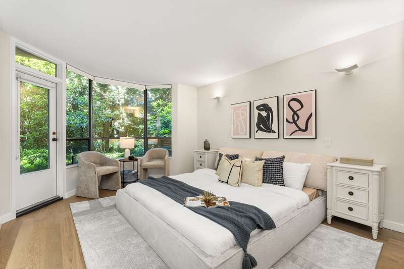 A rare offering of thoughtful design & timeless quality. This extensively renovated 2-bed, 2-bath residence; reimagined through a $300,000 architect-led renovation — blends refined materials with effortless functionality. Featuring integrated premium Miele appliances, Coswick European hardwood floors, heated bathroom floors, & a bidet-style Toto toilet, every detail has been carefully curated. Both bathrooms feature elegant walk-in showers with rainhead fixtures for a spa-like experience. Custom cabinetry by Duke Kitchens, designer Artemide lighting, and enhanced task and ambient lighting throughout elevate the space. The expansive 600 sq ft patio with a gas fireplace and BBQ connection extends the living space outdoors. OPEN HOUSE Sat October 4th, 1-4 pm.