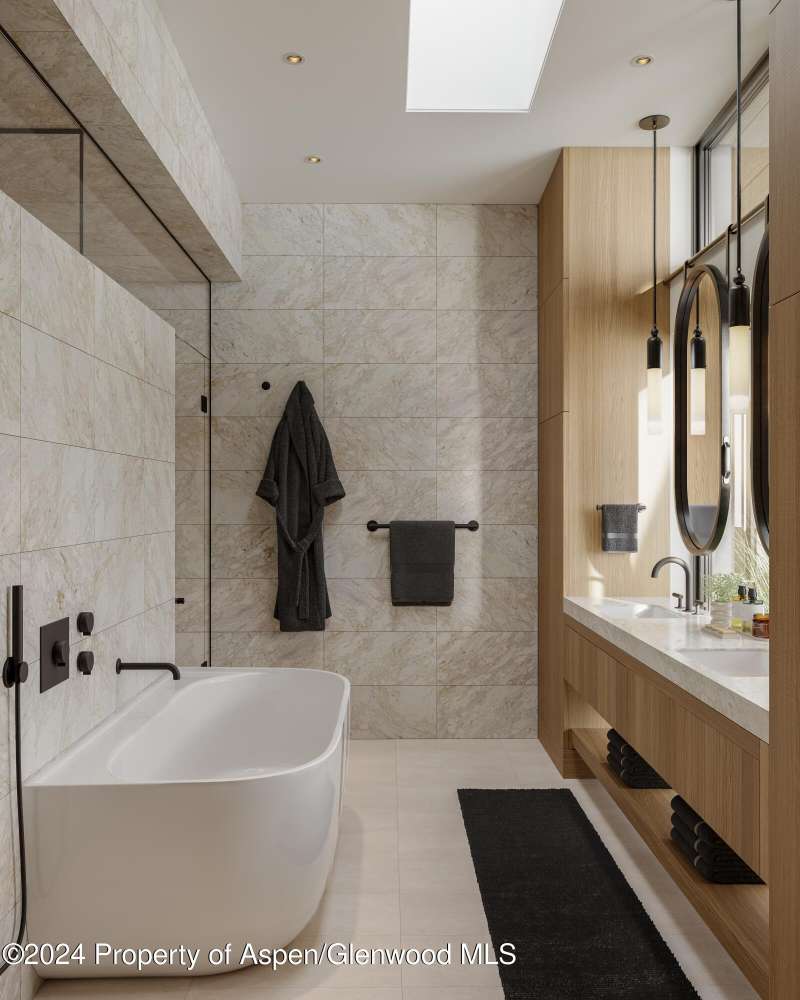 The most iconic residence in Snowmass Base Village. A modern mountain cabin perched high features spacious single-level living, direct elevator access, an open-concept floor plan, gracious outdoor living, and well-appointed secondary bedrooms and shared spaces. Six bedroom suites, each with a dedicated rooftop balcony, plus a large flex game or media room. Large, operable sliding glass doors open seamlessly to an expansive private terrace and to some of the most breathtaking views in Snowmass. Provisions for an optional hot tub. Full-height windows bring in natural light and fresh mountain air, while constant natural ventilation provides exceptional indoor air quality. Vaulted ceilings. Impeccably designed interiors with your choice of two luxurious finish palettes. Each showcases beautiful natural wood tones in millwork, accent walls and ceilings, stone slab and quartz countertops, stone, porcelain and ceramic tiles, and decorative lighting, accentuated with a selection of optional enhancements. A custom-crafted Poliform kitchen punctuated with Gaggenau appliances, superbly crafted flooring by Arrigoni Woods, and bathrooms with top-line artisanal quality Waterworks plumbing fixtures. Includes revolutionary Opti-myst Pro linear fireplaces in the living room and primary bedroom, incredibly precise induction cooktop, efficient windows, and hydronic heating and cooling. Spa-like five-fixture primary bathroom with steam shower. Walk in laundry/mudroom with dual stacked washers/dryers. A private garage, like you'd find in a single-family home, with space for two cars and additional gear storage. Plus, our signature Stow & Go amenity program includes convenient lockable storage cabinets within each residence, as well as in-building ski and bike storage and a separate owner storage area.