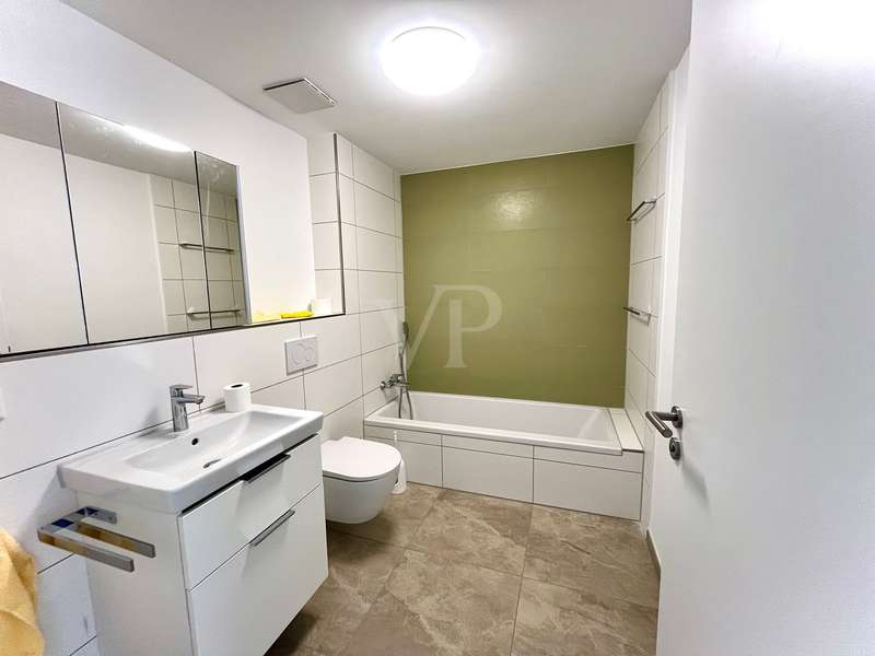 A modern apartment is available for rent, which has just been completed and impresses with its first occupancy and high-quality furnishings. With a living space of approx. 78m², this apartment offers optimal conditions for a wide range of living requirements. The apartment has three well-designed rooms that are ideal as a bedroom, living room and office. The room layout has been well thought out so that all rooms offer sufficient space and design options. The spacious living and dining area impresses with its brightness thanks to large windows that let in plenty of natural light and create a pleasant living atmosphere. The open design of the living area allows for a harmonious combination of living and dining areas. A particular highlight of the apartment are the two modern bathrooms, which are fitted with high-quality sanitaryware. The living rooms and bathrooms are furnished with first-class materials and modern designs that underline the high standards of this property. The energy efficiency of this apartment is optimal, as it is equipped with a modern heat pump heating system, which provides constant cozy warmth and reduces energy consumption at the same time. This type of heating not only conserves resources, but is also cost-efficient. The property is in an attractive location with a good infrastructure. Stores for daily needs, public transport and green spaces are nearby and make for comfortable living. The transport connections are also excellent, meaning that both the city center and surrounding areas are easily accessible. As a first-time occupancy, the apartment offers the advantage that no renovation work is required. Everything is new and ready to use, making it easy to move in. The combination of an attractive location, high-quality furnishings and well thought-out room layout makes this apartment an ideal home for singles, couples or small families. Arrange a viewing today to see the benefits of this modern apartment for yourself. We are at your disposal for further information and questions.