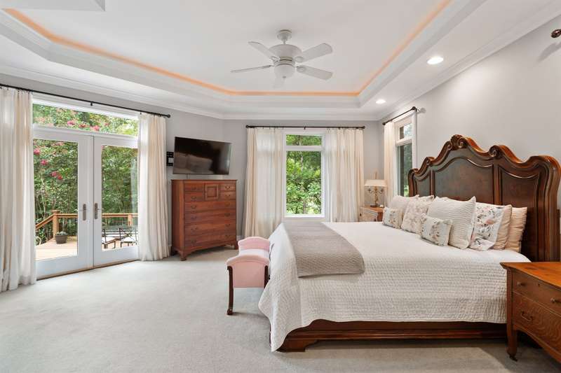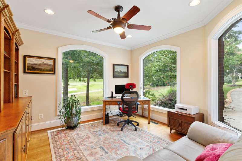 Nestled on a quiet cul-de-sac overlooking the Tom Fazio-designed course at Treyburn Country Club, 3426 Fairway Lane offers three levels of exceptional living bathed in natural light. Hardwood floors grace the main level, where a gourmet kitchen with high-end appliances flows seamlessly into the two-story great room anchored by a stunning stone fireplace?perfect for entertaining. The generous main-floor primary suite features a spa-like bath for ultimate relaxation. A finished basement adds flexible living space with a guest bedroom, full bath, and plumbing in place for a wet bar, plus tremendous storage and workshop space with potential for a second kitchen, art studio, or nanny suite. Expansive decks on two levels?totaling 676 sq. ft.?offer sweeping golf course views and a natural gas connection for outdoor cooking. Surrounded by 10 acres of open space, this superbly maintained all-brick home sits on a .44-acre lot and combines craftsmanship, comfort, and an unbeatable setting in one of Durham's premier communities.
