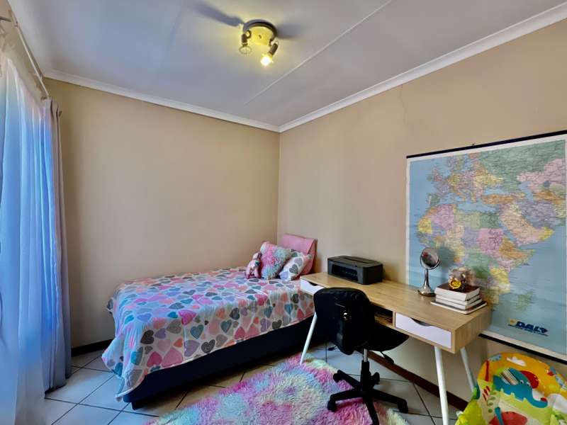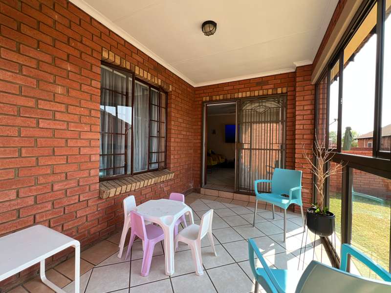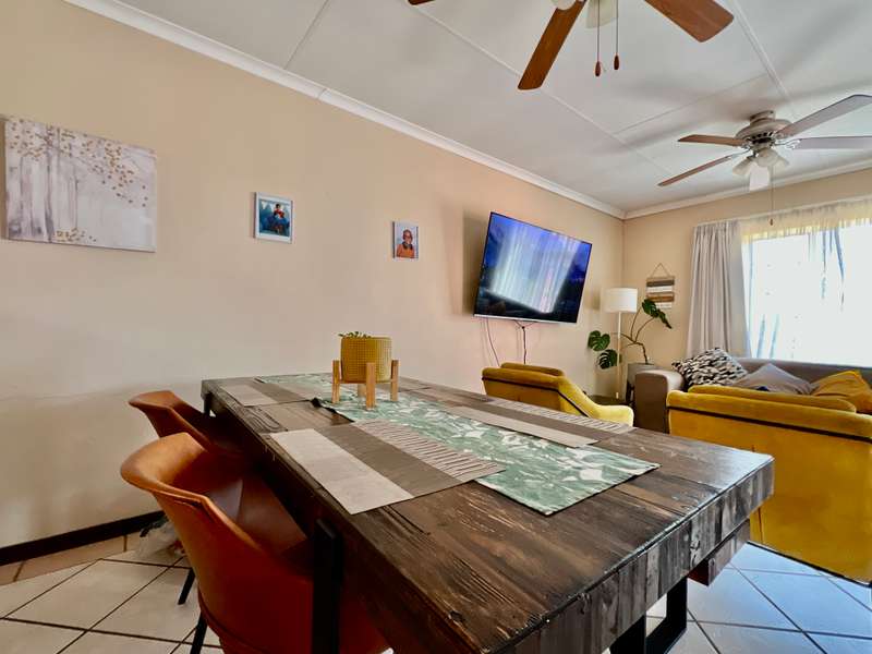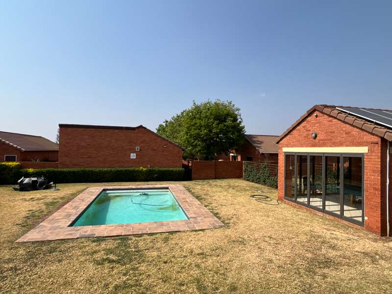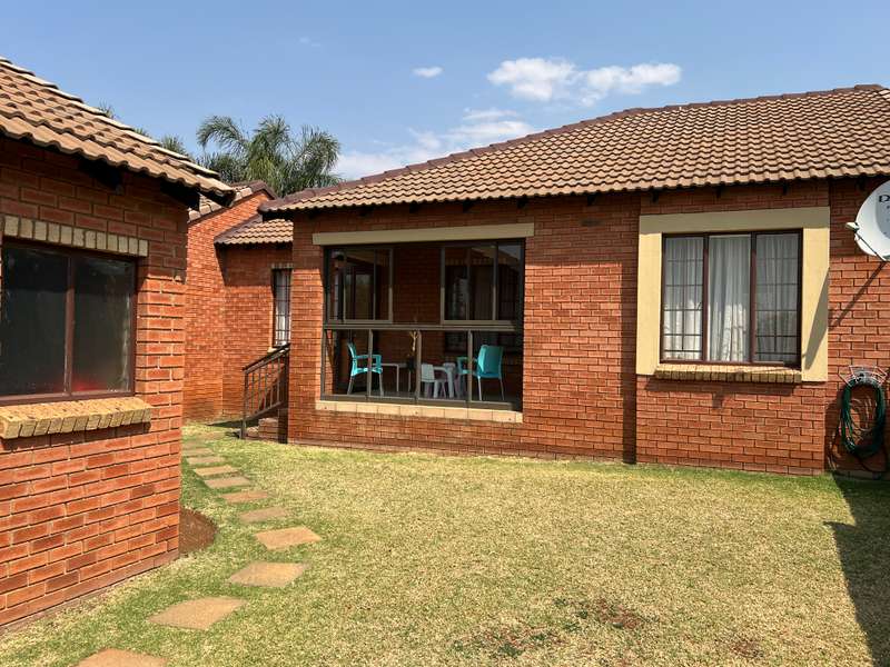 EXCLUSIVE mandate What an awesome buy this would be for the first time buyer or somebody that would like to scale down in a secure environment! What is even better is the fact that you are located directly across the complex clubhouse with swimming pool. This home is a lovely single storey with a very spacious garden! From the double garage there is a door leading into the garden. From the garden you step onto an enclosed veranda. The veranda overlooks the entire garden. The dining room and TV room is incorporated in a large open plan space and directly next to it you'll find the kitchen. Two bedrooms just down the hallway share a lovely bathroom. The master bedroom is located at the end of the hallway and it boasts with its own private bathroom! Shops are conveniently located close by in Wekker street! Here you'll find a Checkers, Woolworths and a Clicks, amongst others. Contact us today for a viewing appointment!