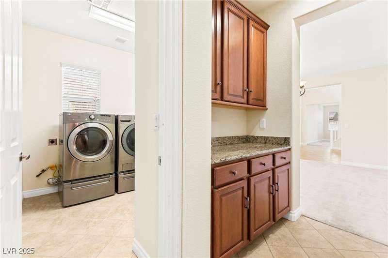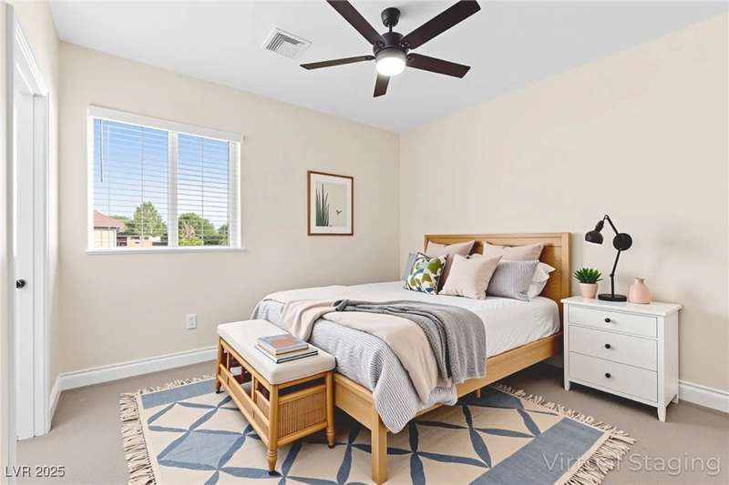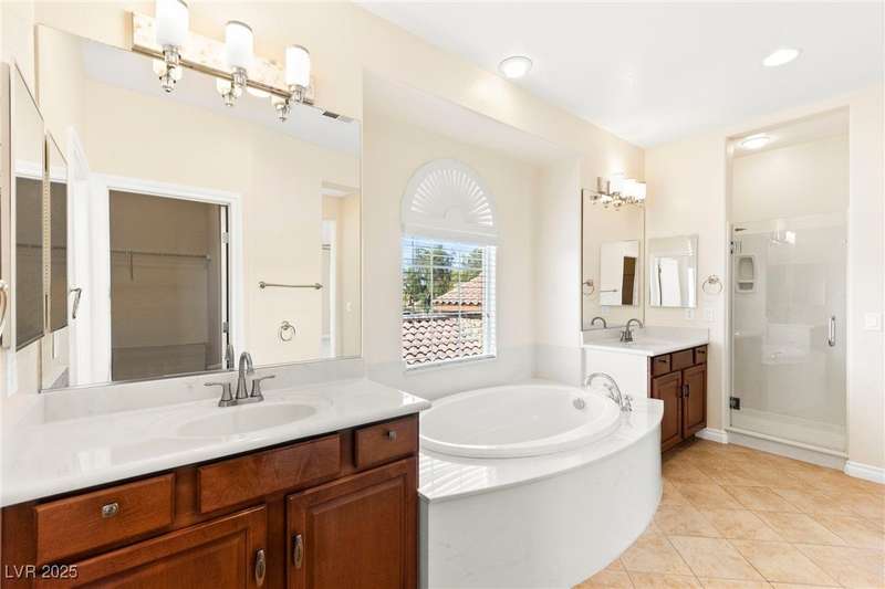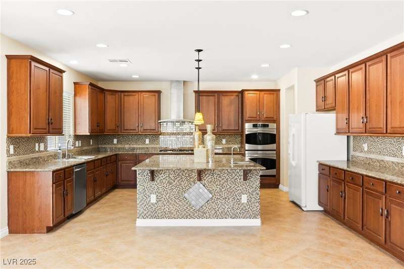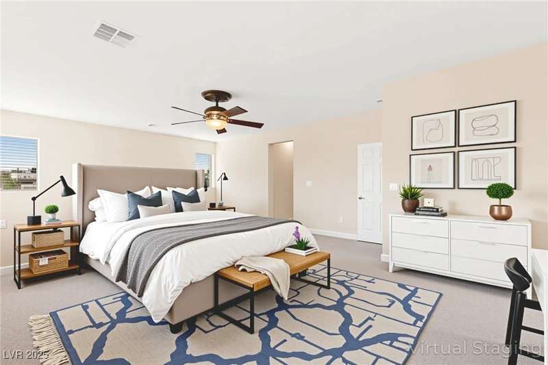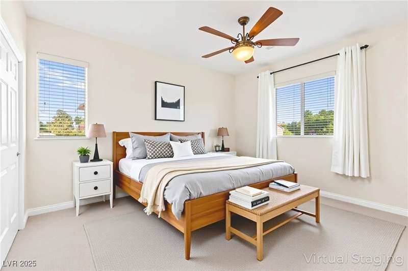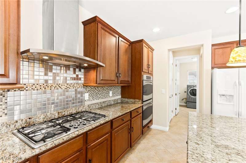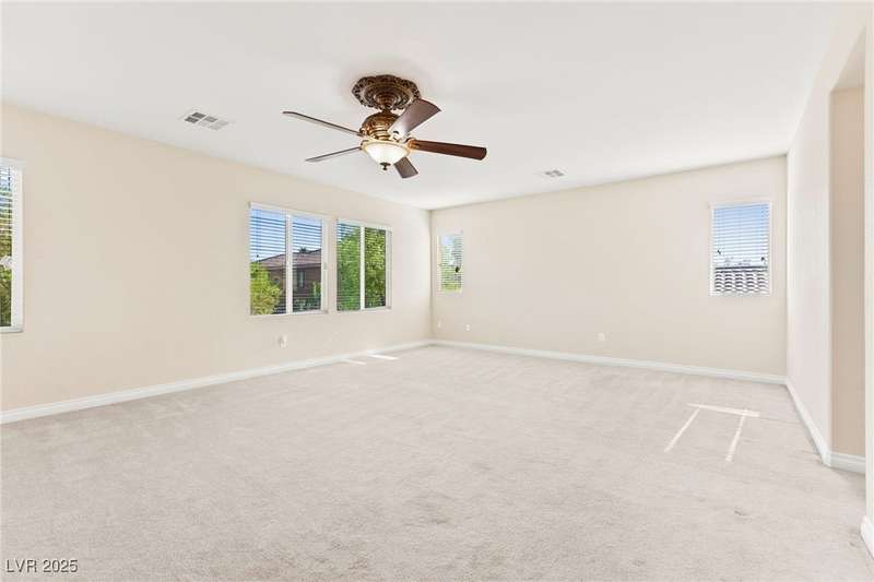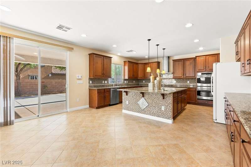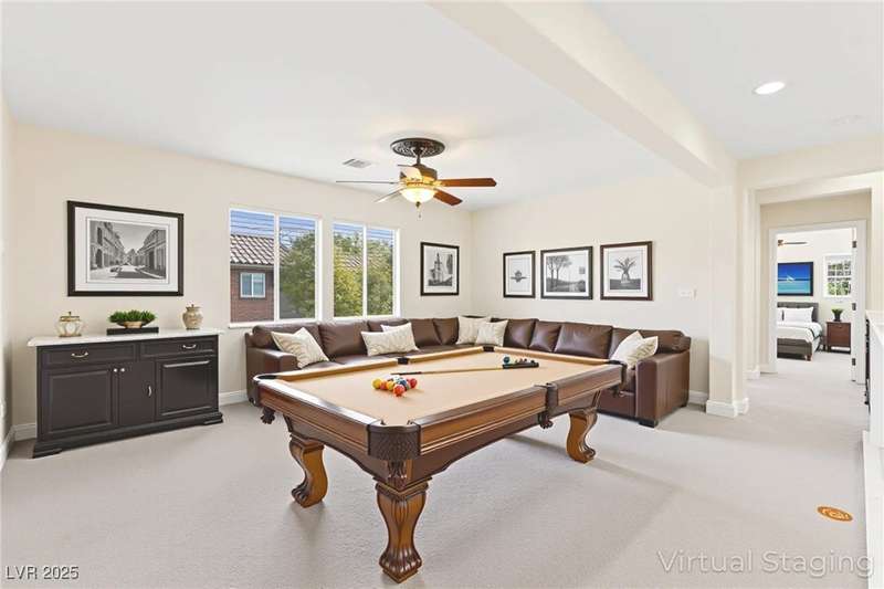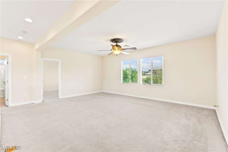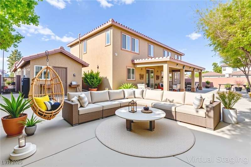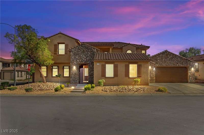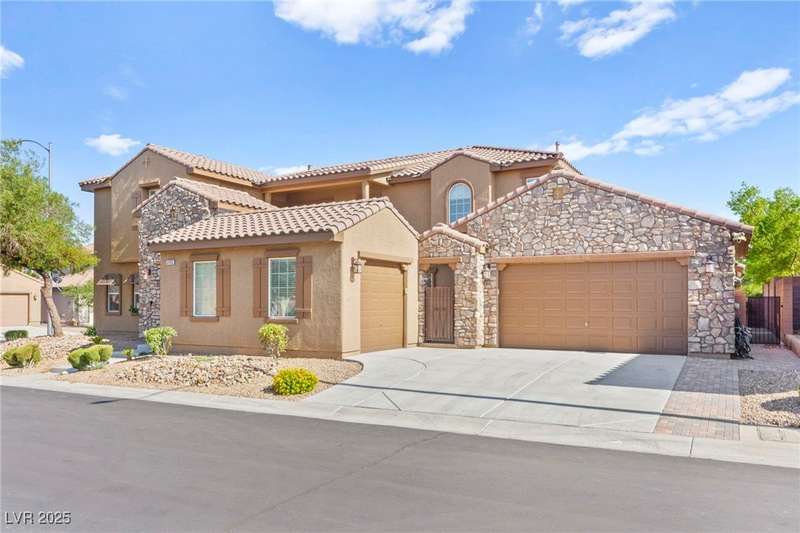 Welcome home!!!Tucked inside a gated community just 10 minutes from the Las Vegas Airport and the strip this stunning home offers the perfect mix of style, space, and everyday ease. With nearly 4,000 Sq ft of thoughtfully designed living space on a generous 9,583 Sq ft lot, this beautiful residence features 5 spacious bedrooms and 5 bathrooms providing plenty of room to live, work, and unwind. At the heart of the home is a show stopping kitchen with an oversized island and built-in double oven. Upstairs, a bright loft adds flexible living space, and the expansive primary suite offers a spa like escape with dual sinks and a luxurious bath. Step outside to a private backyard oasis, complete with a full length upgraded covered patio and a large storage unit. Additional highlights include two new A/C units, freshly painted interior and exterior, a spacious three car garage with built-in cabinets, a split A/C unit in the garage.This is more than a home it’s your next chapter.