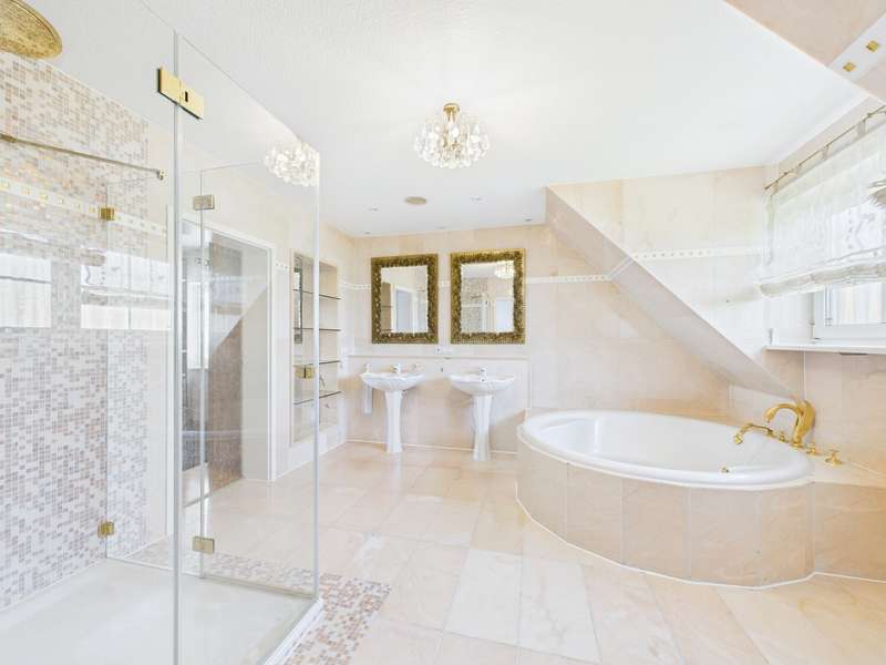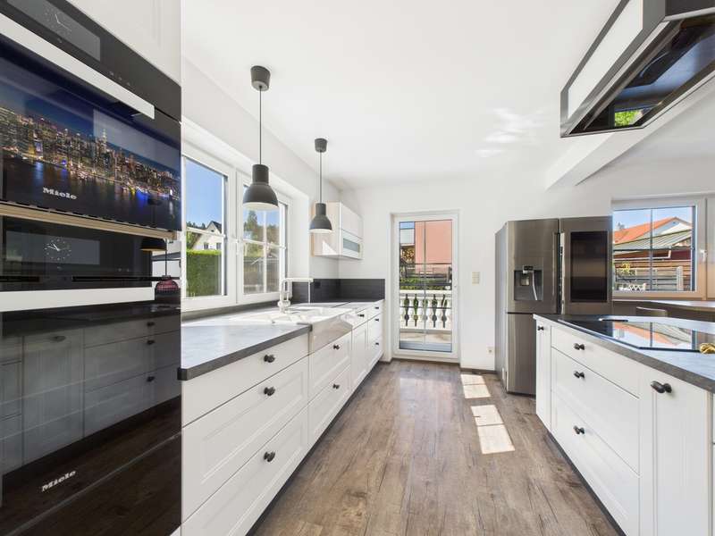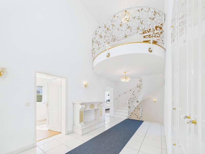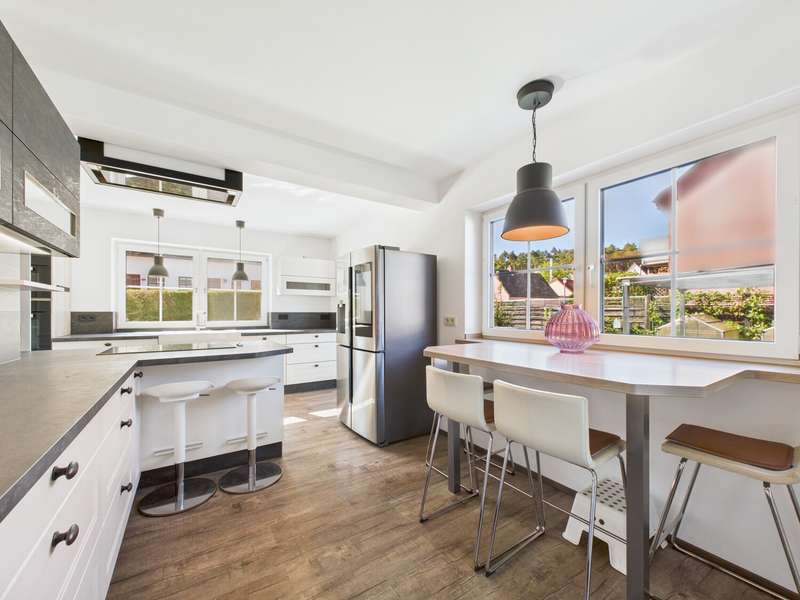 Welcome to a home that is more than just a house - it's a place where dreams come true! In Rednitzhembach, you will find a property that uniquely combines elegance, comfort and security - a real family paradise with that certain luxury that makes every day special. With around 238 m² of living space on three levels, this house offers space for everything that makes life beautiful: 10 rooms that are as flexible as your wishes - children's room, guest room, home office or hobby room. Everyone will find their own personal favorite spot here. The master bedroom is like a private suite: with its own en-suite bathroom, a dressing room and a feeling of pure exclusivity. The separate commercial unit with its own entrance opens up additional possibilities - whether a practice, studio or office, this is the perfect place to combine work and family life. The rooms are currently used as a wellness area for relaxation. As soon as you step through the door, you will feel the special aura: a light-flooded hallway with sparkling chandeliers and an impressive marble staircase leads you directly into the heart of the house. The spacious living and dining area opens up here - a room created for evenings together, cheerful family celebrations and cozy hours by the fireplace. The stylish double doors invite you out onto the large sun terrace, from which the magnificent garden presents itself in all its vastness. The modern kitchen is a connoisseur's dream: high-quality brand-name appliances, well thought-out design and its own access to the garden make it a meeting place for the whole family - from a quick breakfast in the morning sun to a relaxed evening of cooking with friends. And then there's the highlight in the garden: a pool that provides refreshment on warm summer days and plenty of space to romp around, relax and enjoy. Three garages with a pitched roof and additional storage space round off the overall package - practical, well thought-out and absolutely family-friendly. This house also sets technical standards: underfloor heating on all levels, smart control of many functions via app, modern air conditioning - here you can enjoy future living today. This detached house is no ordinary home - it is a place where children's dreams grow, where the family comes together and where every day holds a little bit of luxury. Are you interested? We would be happy to arrange a viewing appointment with you.
