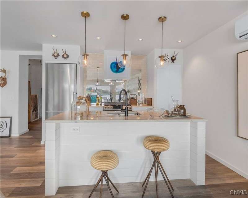 Immerse yourself in the breathtaking beauty of Skaneateles Lake at the heart of the village with this commercial building now on the market! This property offers three residential apartments and a commercial storefront, all situated in the vibrant downtown area. The building has undergone renovations and has been meticulously designed by a well-known interior designer, ensuring top-notch quality and sophistication. The one-bedroom apartments boast personal laundry facilities and modern, luxurious finishes. Each unit also features a private deck with views of the lake, allowing residents to soak in the stunning scenery. The commercial space is generously sized with expansive lake views, and the tenant has access to a basement for storage. Furthermore, each residential unit includes 19 feet of private waterfront and individual utility meters for rental purposes. The property also includes a permanent dock, hoist, two moorings, and two private parking spaces. Don't let this opportunity slip through your fingers to own a slice of Skaneateles Lake in the heart of the village!