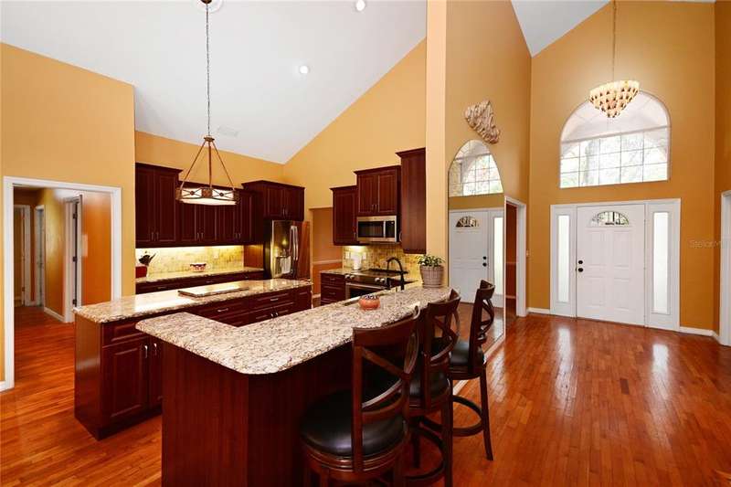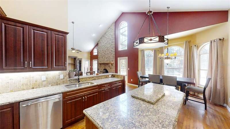 This home will impress you! It’s the perfect mix of space, privacy and location. Lots of space with 4-or-5-bedrooms, separate family and living rooms, oversized 3-car garage and massive pool with spa, screen enclosure and outdoor bar/summer kitchen. Super private on a wooded 1-acre lot and fenced backyard. Strategically located in the Bentwood neighborhood of Port Orange, which is central to just about everything. Desirable split floor plan is perfect for entertaining as it opens up to a great room with fireplace, spacious kitchen with granite counters and stainless appliances and several doors to the pool deck. Foyer is flanked by a formal dining room and home office/den currently used as a 5th bedroom. Large Primary en-suite has a tray ceiling and french doors to the pool. Primary bathroom features his and hers walk-in closets, jetted tub, walk-in shower and dual vanities. The west wing of the house boasts three more bedrooms and bathrooms, indoor laundry and a large family room currently setup for billiards. Saltwater pool is heated and has a tropical vibe with lush landscaping surrounding the fenced backyard. Driveway has an extra parking space with electricity for RV or boat parking. Roof replaced in 2021. Termite bonded. Flood zone X. Super low HOA fee of only $75 per year, which provides access to the neighborhood dock and kayak launch into the Spruce Creek wildlife estuary. Spruce Creek High School and Elementary School both located within 2-miles, I-95 at Dunlawton is less than 3-miles away and only 6-miles to the beach! Sold AS-IS. All measurements are approximate.