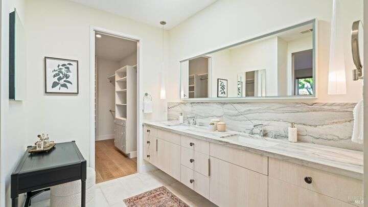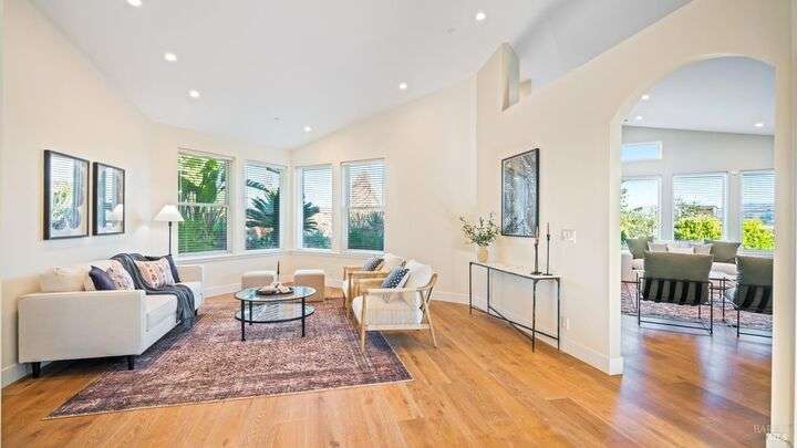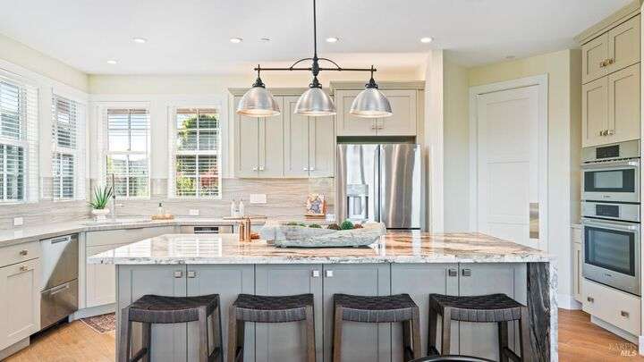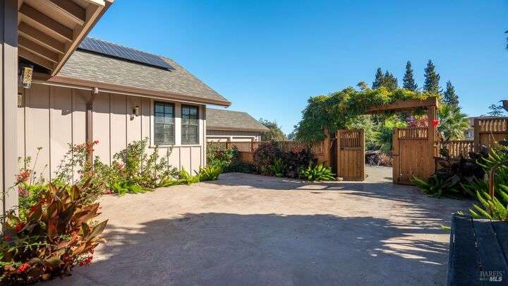Welcome to this beautifully appointed single story residence in the highly sought-after Fountaingrove community. Set on a generous .50 acre lot, this 4 bedroom, 2.5 bathroom home combines luxury, functionality, and elegant design in a stunning Wine Country setting. A tranquil courtyard entry leads you into an airy, light-filled interior with high ceilings and hardwood flooring throughout. Many windows flood every room with natural light, creating a warm and inviting atmosphere. Ideal for both entertaining and everyday living, the home features formal living and dining rooms, as well as a spacious family room with a cozy fireplace. At the heart of the home is a chef's dream kitchen, complete with a striking granite waterfall island, and stainless steel appliances, perfect for entertaining in style. Retreat to the private primary suite where you'll find direct access to an outdoor hot tub and open-air shower - your personal spa oasis under the stars. This home also includes a 3-car garage, a beautiful mature landscaped yard with mountain views and multiple outdoor areas for relaxing or hosting guests. This Fountaingrove gem offers the perfect blend of comfort, sophistication, and Wine Country charm-all on a peaceful, half acre setting.