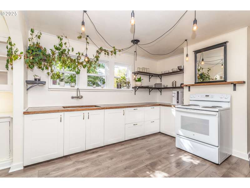 A true Portland Classic! Wonderful Dutch Colonial in the heart of Montavilla - tastefully updated, and filled with old Portland charm! 4 bedroom, 1.5 baths, with large living room and bright, open kitchen/dining room complete with built-ins, wood counters, and new LVP flooring! 3 generous sized bedrooms upstairs and one bedroom on the main, all with wood floors. 2 updated baths - one upstairs and one on the main floor. The basement is partially finished, with a huge family room and tons of room for storage or hobbies. Neat and tidy, fully fenced yard with relaxing covered patio in the back,second patio area up front, and mature landscaping. New floors, recent roof, and meticulously maintained,this one is a must see! [Home Energy Score = 1. HES Report at https://rpt.greenbuildingregistry.com/hes/OR10242260]
