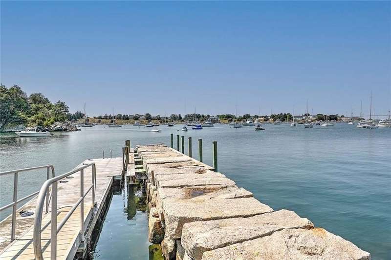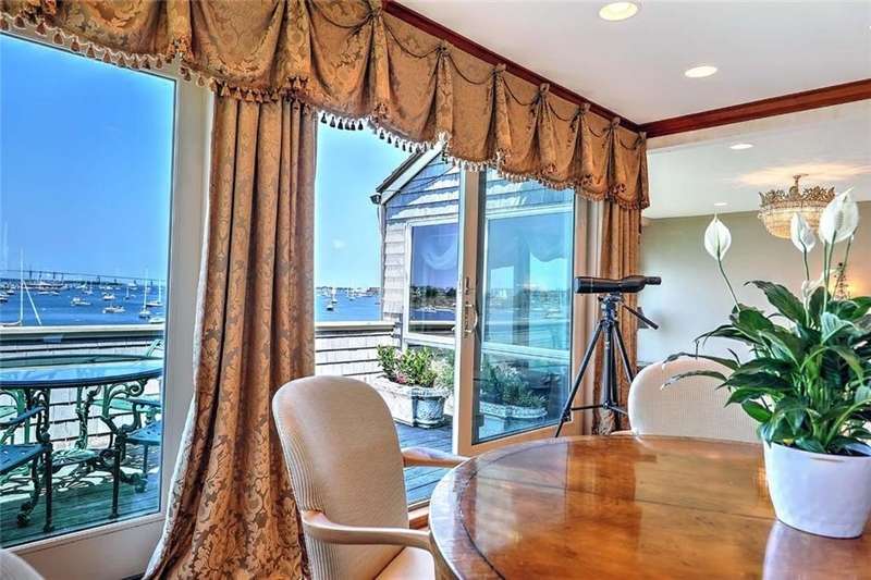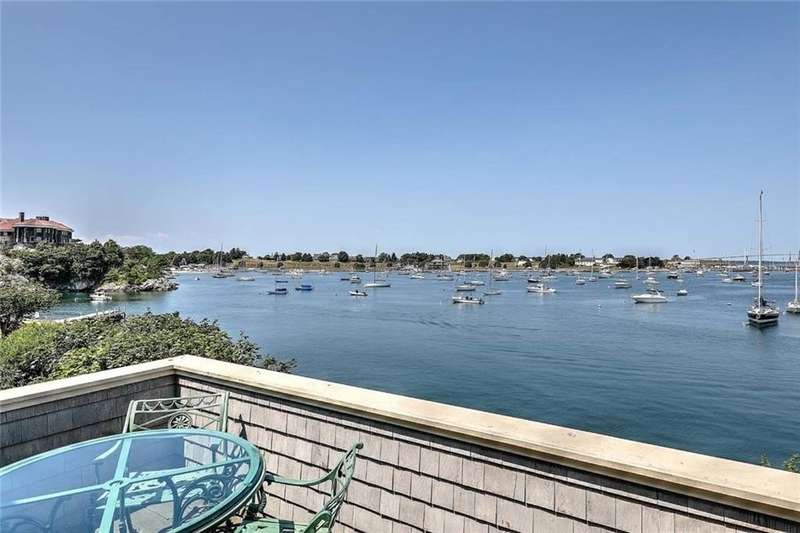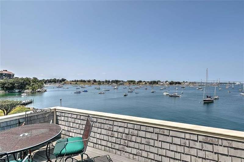 This remarkable town house style condo is part of the coveted Beechbound Condo Association, and available for the first time in 25 years. Offering a front row seat to the most beautiful views of Newport Harbor front. Overlooking a steady parade of boating life and the Newport Bridge - the ever changing sky, sun and clouds promise a view that always delight. This beautiful property has been renovated to the highest standards with meticulous custom cabinetry in each of the 4 ensuite bedrooms. The expansive primary suite occupies the upper level and enjoys a large deck that over looks Beautiful Newport Harbor. The finely finished primary bathroom offers teak & holly flooring, and custom teak cabinetry throughout. The lower level has 2 well sized bedrooms each with finely finished bathrooms. The lower level also has a second beautiful kitchen, meticulously outfitted, perfect for when housing a group of sailors or extended family. The lower level also has its own terrace for enjoying the outdoors. Beechbound stately grounds are the perfect setting for enjoying life on the waterfront. The Beechbound boat house dock and launch pad add wonderful access to fun on the waterfront, whether its to launch a paddle board and enjoy the harbor or taking the Launch boat over to Bannisters Wharf for Dinner, the Life Style offered with this property is exceptional.
