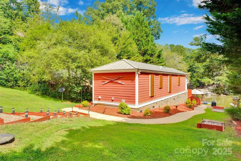 Discover a rare Lake Norman waterfront gem - This charming "tiny home" delivers the ultimate lake lifestyle! This unique cottage home has a fascinating history as one of the Katrina cottage homes. The open floor plan of this 2 bedroom, 1 bath home allows it to maximize its space and feels larger than expected. Outside is perfect for entertaining on the lake! With its large back porch, pebbled beach area, multiple kayak racks, outdoor shower, covered dockside bar, and a basketball court! This is the perfect place for a lakeside retreat. Even better, all personal property is negotiable-move right in and start living the lake life immediately!