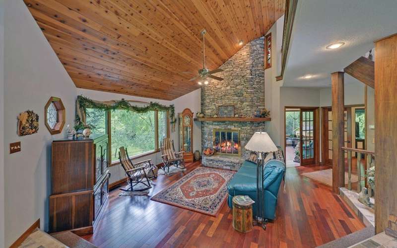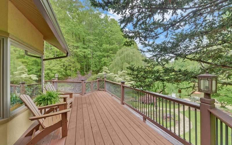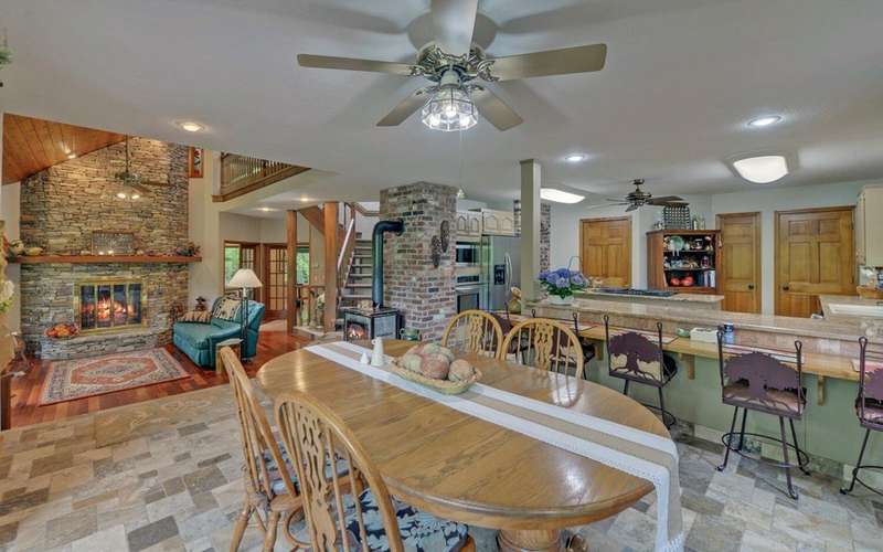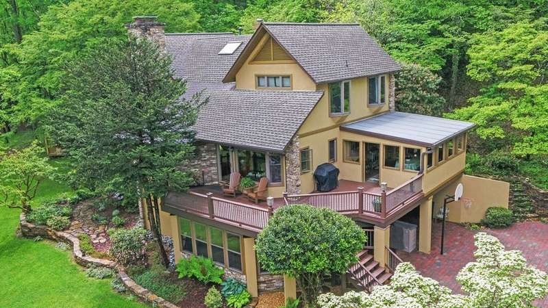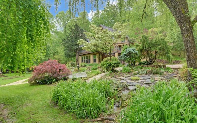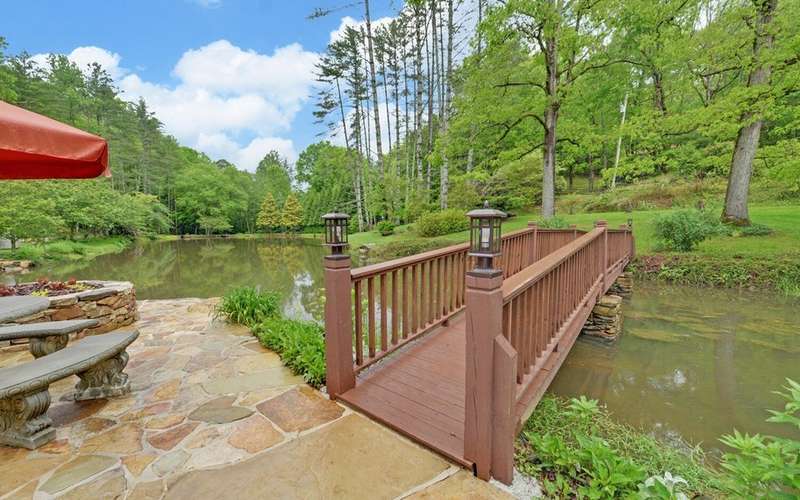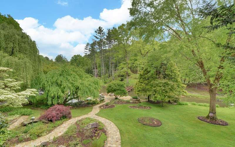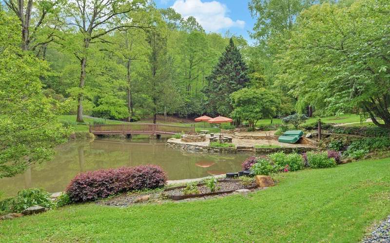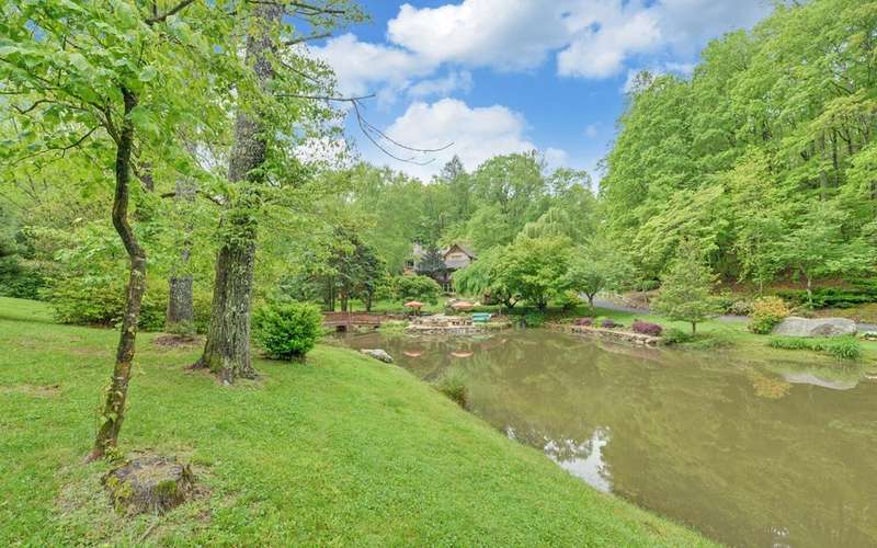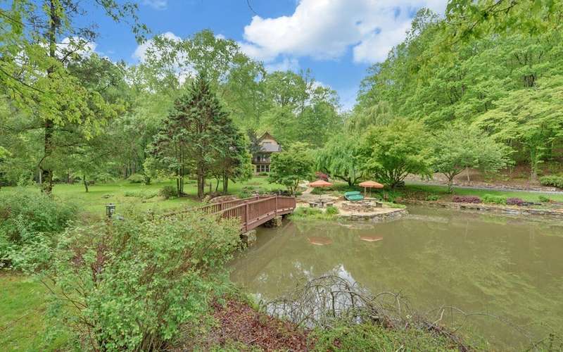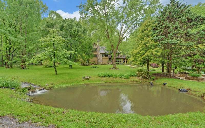 This 18.5-acre estate is a one-owner legacy, offering timeless design, natural beauty, and enduring quality. Custom-built with care by its current owners, the home features a vaulted great room with wood ceilings, a dry stack stone fireplace, and reclaimed brick from a Chattanooga schoolhouse. Hardwood floors run throughout the main and upper levels, with rich Brazilian cherry on the main floor. The kitchen/dining area boasts granite countertops, a gas island cooktop, travertine floors, and a soapstone wood-burning stove. The master suite offers vaulted wood ceilings, a private balcony, a Jacuzzi tub and custom stained glass by Sheridan Snyder, inspired by a painting from the Dutch Golden Age. A dedicated office showcases a built-in desk with more stained glass. Additional spaces include a family room, sunroom, an enclosed covered porch, and a basement level screened patio. The walk-out basement serves as a bonus room with private entry, built-in desk, bathroom, and a Hearthstone gas stove that can convert to wood-burning. Decks provide sweeping views of a natural sanctuary that includes a large pond stocked with fish, fed by two streams and a silt-filtering pond. Stone pathways wind through the property, guiding you to a picnic landing with tables and umbrellas, a picturesque spot for every occasion. A dock, ravine, waterfall, playhouse, and fern garden enhance the landscape. The detached workshop/garage holds a 20+ ft RV. Minutes from city parks, schools, and downtown.