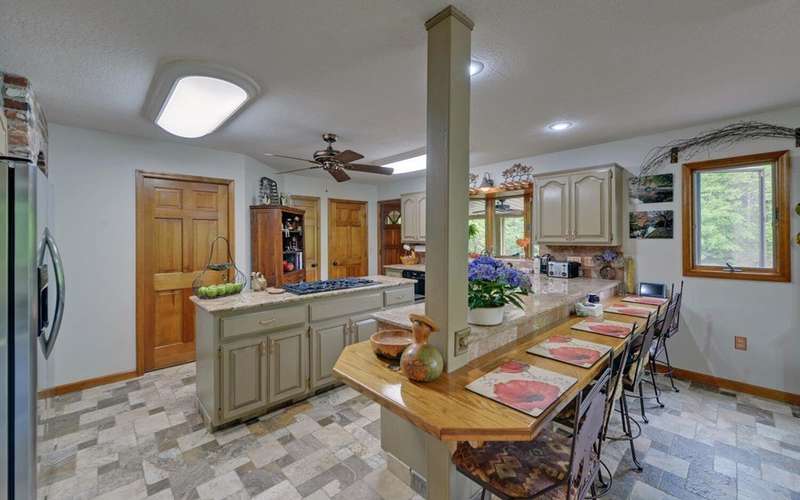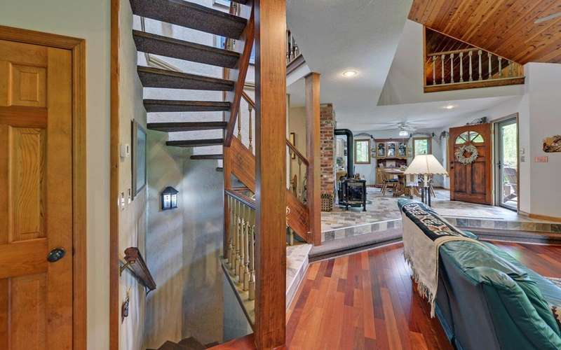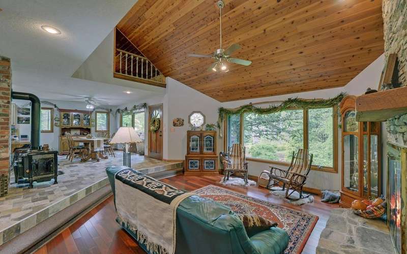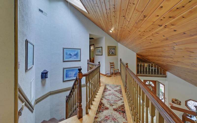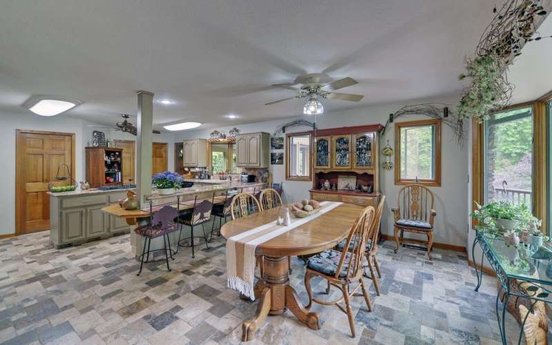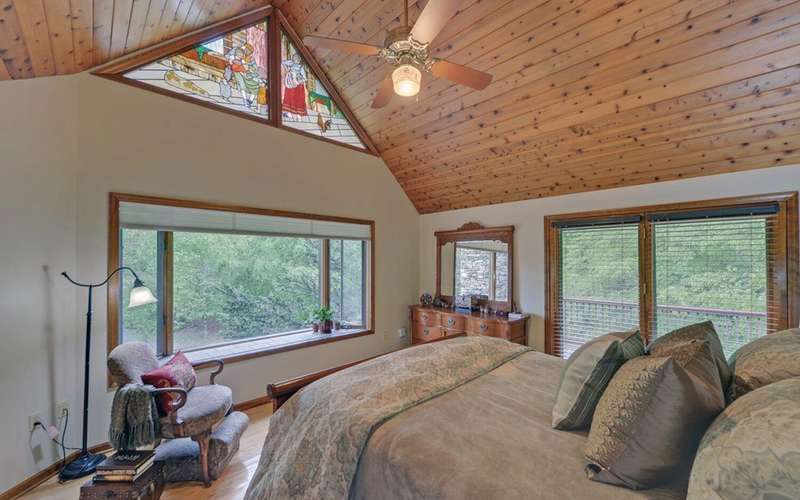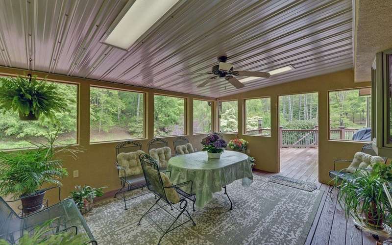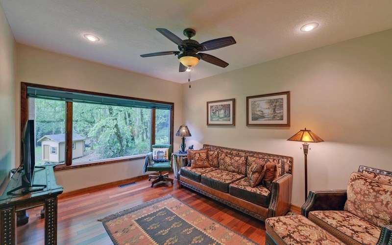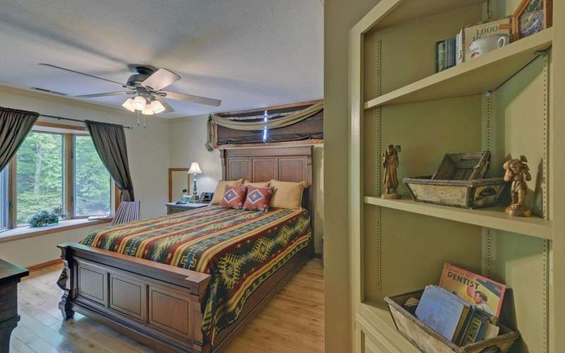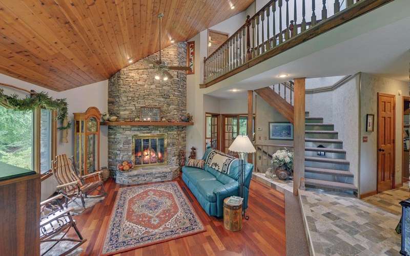 This 18.5-acre estate is a one-owner legacy, offering timeless design, natural beauty, and enduring quality. Custom-built with care by its current owners, the home features a vaulted great room with wood ceilings, a dry stack stone fireplace, and reclaimed brick from a Chattanooga schoolhouse. Hardwood floors run throughout the main and upper levels, with rich Brazilian cherry on the main floor. The kitchen/dining area boasts granite countertops, a gas island cooktop, travertine floors, and a soapstone wood-burning stove. The master suite offers vaulted wood ceilings, a private balcony, a Jacuzzi tub and custom stained glass by Sheridan Snyder, inspired by a painting from the Dutch Golden Age. A dedicated office showcases a built-in desk with more stained glass. Additional spaces include a family room, sunroom, an enclosed covered porch, and a basement level screened patio. The walk-out basement serves as a bonus room with private entry, built-in desk, bathroom, and a Hearthstone gas stove that can convert to wood-burning. Decks provide sweeping views of a natural sanctuary that includes a large pond stocked with fish, fed by two streams and a silt-filtering pond. Stone pathways wind through the property, guiding you to a picnic landing with tables and umbrellas, a picturesque spot for every occasion. A dock, ravine, waterfall, playhouse, and fern garden enhance the landscape. The detached workshop/garage holds a 20+ ft RV. Minutes from city parks, schools, and downtown.