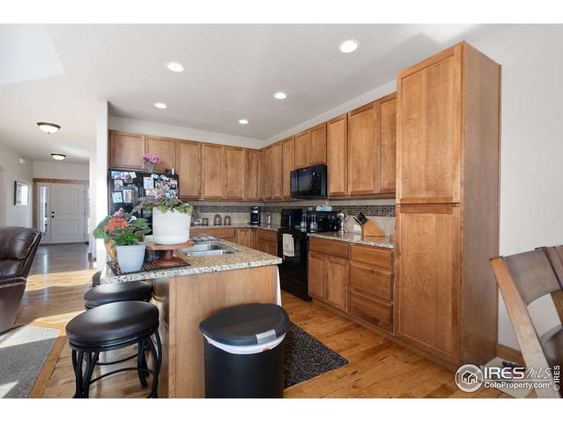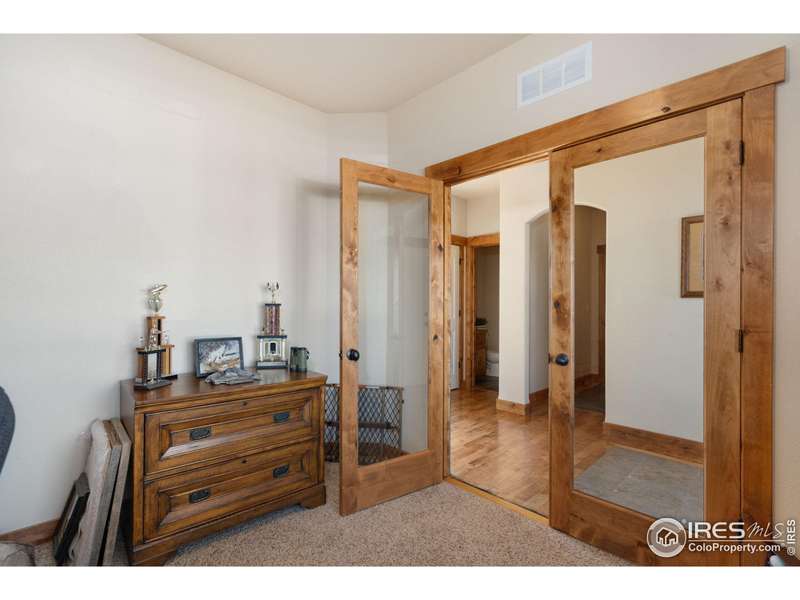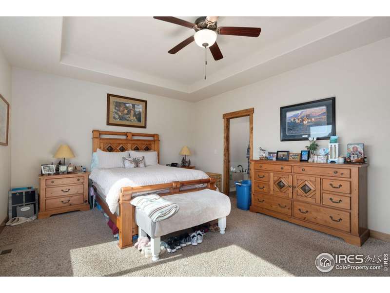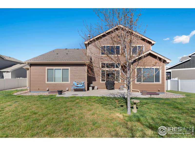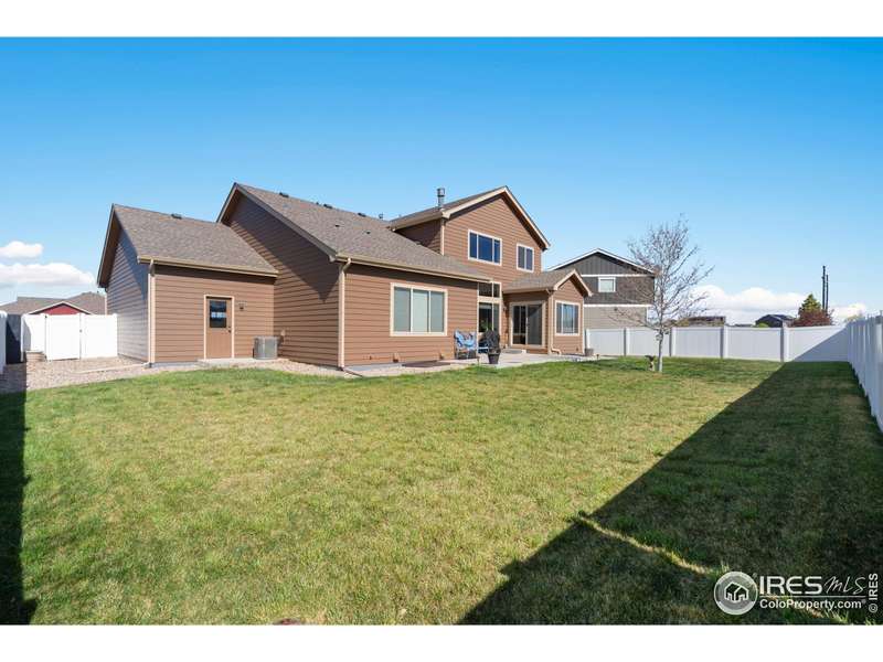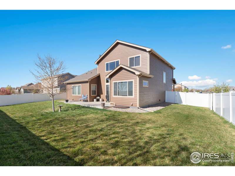 $25,000 PRICE REDUCTION! Well maintained, like new 2 story Sage Home in The Meadows! This 3 bedroom, 4 bath home has just been freshly painted on the exterior and has a covered front porch. For the chef's in the family you will enjoy a kitchen that has spacious granite counters that are perfect for meal prep, warm wood cabinets, a large pantry cabinet and an oversized island. All the high end kitchen appliances are included. The living room has an open airy feel with a 2 story vaulted ceiling. Relax on cozy nights by the gas fireplace. Warm hardwood floors accent the entry, the kitchen, and the dining area. The main level primary bedroom has a coffered ceiling, beautiful 5 piece bath, a walk-shower and spacious walk-in closet. The main level office has wood french doors perfect for privacy when working from home. The laundry is on the main floor with washer and dryer included. Upstairs you will find a large loft/flex space, two more good sized bedrooms and a luxury full bath. The finished basement has a beautiful wet bar with a refrigerator, a large recreation room great for entertaining or watching the game, a 3/4 bath and a huge storage area with shelving for all your gear. All window blinds are included. Central A/C cools the house on hot summer days. The spacious 3 car garage has an epoxy floor and an additional tandem work space. Sip your morning coffee or kick back and enjoy a BBQ on the oversized back patio that is shaded in the afternoon and evening. The large back yard is fenced so your pets can roam free. A sprinkler system makes lawn care a breeze. Enjoy a premium lot on the edge of the subdivision backing to farm land. Original owner has lovingly maintained this quality Sage Home! Popular Rio Grande plan. Easy access to I-25 for commuters and only 15 minutes to Fort Collins. It's easy to show! Quick possession possible. We would love to welcome you home!