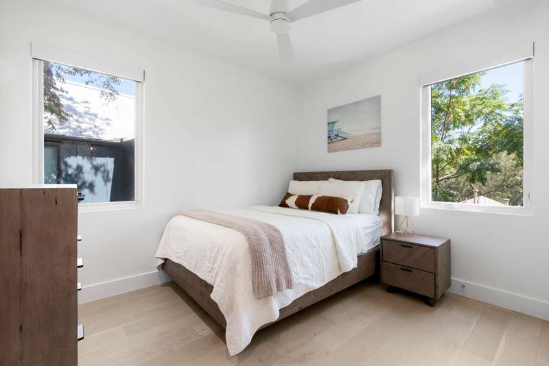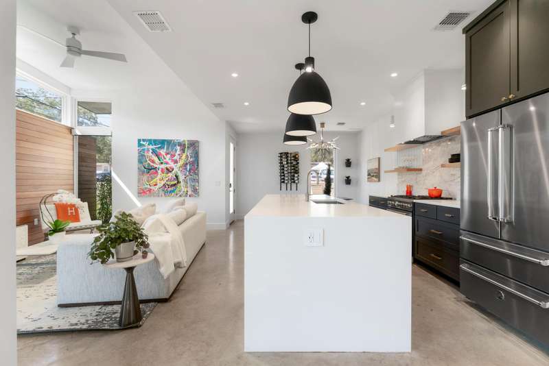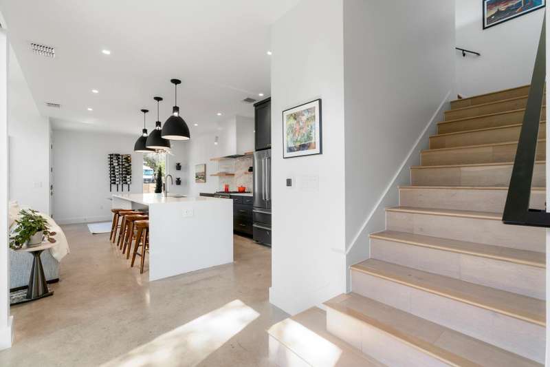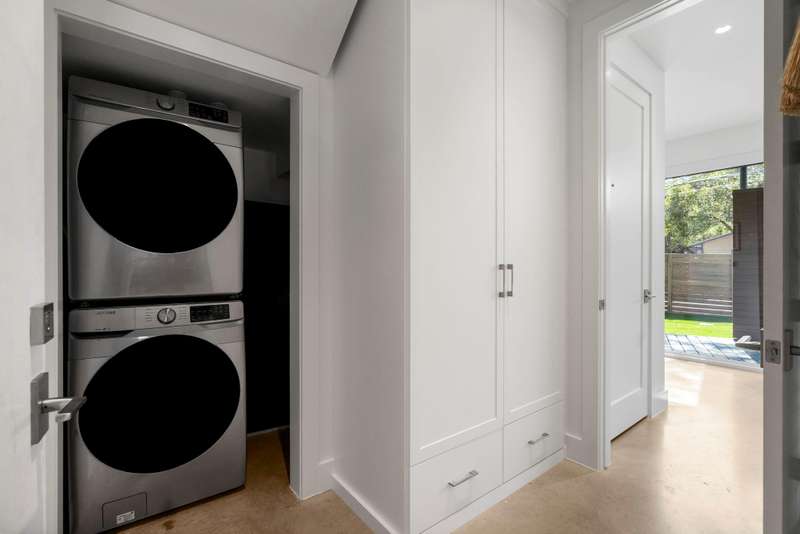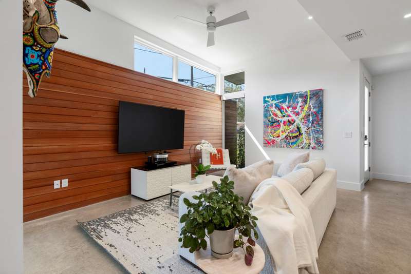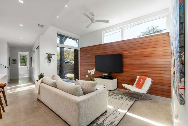 Live the 78704 lifestyle in comfort and style. Situated on a corner lot near South First Street, this modern residence blends convenient, lock-and-leave ease with thoughtful, design-forward upgrades. Tall ceilings and concrete floors ground the main level, while white oak flooring continues upstairs for a warm, cohesive look. The kitchen shines with stainless Bertazzoni appliances, a gorgeous tile backsplash, and an over-sized breakfast island. A $70K Lutron HomeWorks system with Ketra lighting and automated shades elevates every room with tailored light and effortless control.
