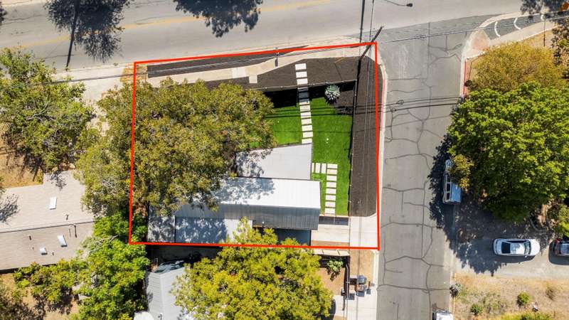 Outdoors, the fenced yard is fully turfed, fully irrigated, and designed for gatherings with an extended 475 SF patio and deck beneath a leafy canopy, plus room for a pool, if desired. Recent exterior washing, retaped roof, and refreshed soffits reflect conscientious care. A side wood shed organizes garden and lawn tools. This is comfortable, convenient luxury in the heart of 78704, minutes to coffee, dining, and South Austin's best parks and boutiques.