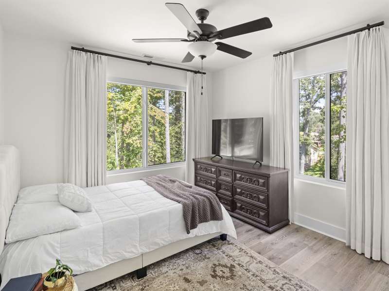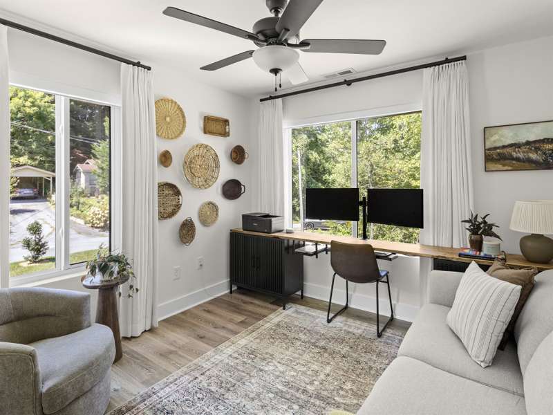 Fully furnished and move-in ready! Just 0.5 miles to the Ecusta Trail entrance at Trailside Brewing and 1 mile to Main St. Hendersonville! Only 2 years old, this modern home features a main-level primary en suite, open floor plan, quartz countertops, and stainless steel appliances. A true wood-burning fireplace adds cozy charm for winter nights, while automatic window treatments offer effortless comfort. Outside, a container garden awaits your fall plantings. Light-filled and low-maintenance, this turnkey property offers the perfect blend of convenience and style in one of Hendersonville's most desirable areas. A must see!