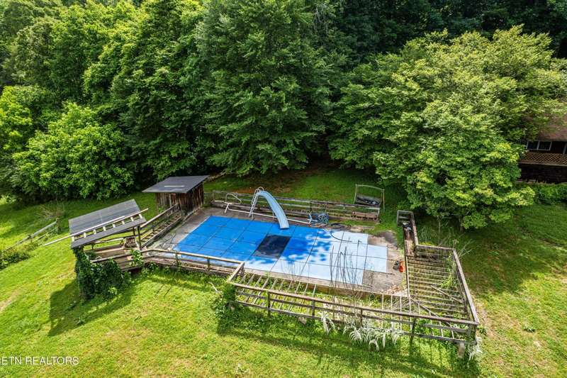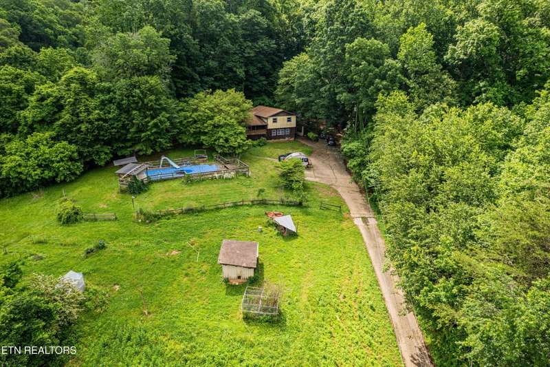 Discover the perfect blend of privacy, space, and potential in this 3-bedroom, 2-bath home situated on over 15 acres. This spacious fixer-upper features generously sized rooms and an open-concept main living area, offering a great foundation for your dream renovation.Enjoy peaceful mountain views from the front porch or relax on the side porch where you will find a deck walkway to a playhouse that can be finished to have a fun outdoor retreat. The property includes a 1-car carport, and a detached 2-car workshop with an upstairs room ready to be finished, and ample storage or hobby space.Ideal for gardening enthusiasts, the land is already producing an impressive variety of fruits and vegetables-including asparagus, apple, pear, pecan, hazelnut, and cherry trees, along with blueberries, raspberries, blackberries, and muscadines. A small greenhouse and large garden tunnel are also in place to extend your growing season.To top it off, an in-ground pool offers a refreshing retreat during the warmer months.With incredible outdoor features and room to grow inside and out, this property is ready for your vision. Bring your creativity and make this your own beautiful homestead! Sold as is no repairs.