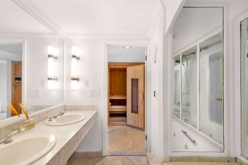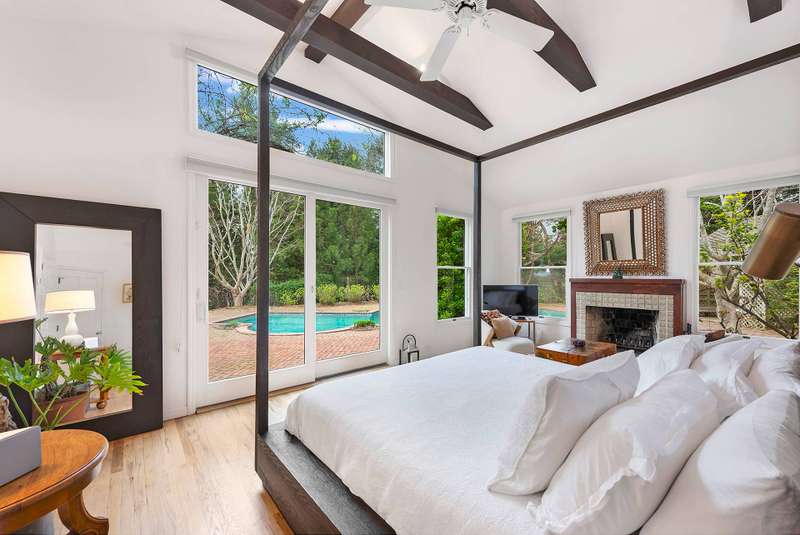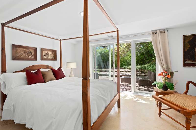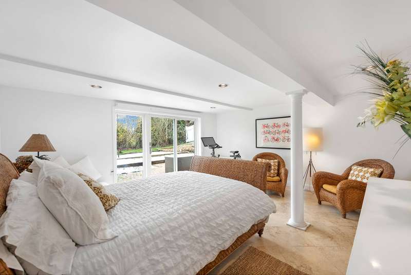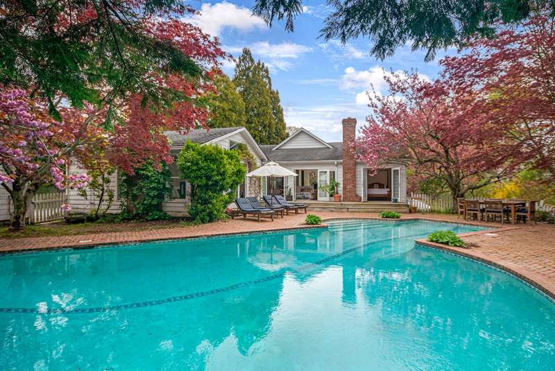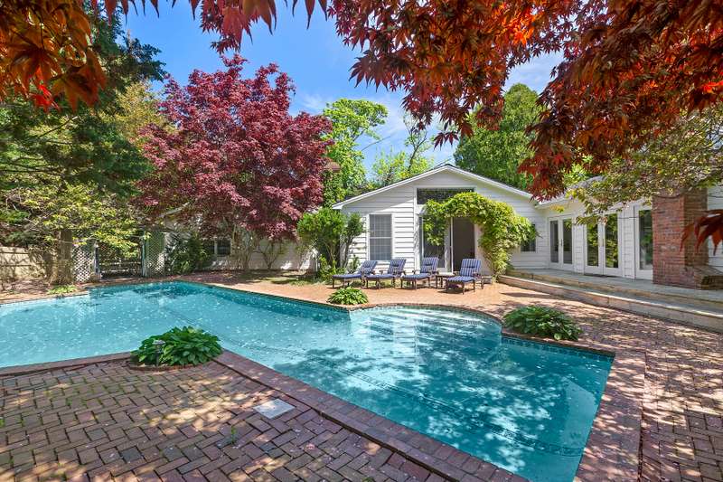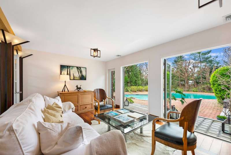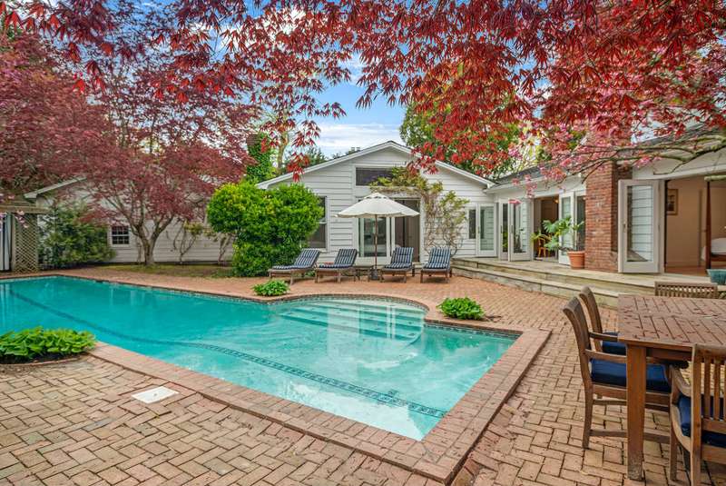 A wonderful south of the highway location in the Village estate area. The immaculate and stylish five-bedroom house features a living room with fireplace and beamed cathedral ceiling, handsome library/media room, dramatic dining room with curved glass wall, four baths and sauna/steam bath. The Primary suite with cathedral ceiling fireplace and steam bath. Two of the 5 bedrooms are located on the walk-out lower level with media extra sitting room. Central air conditioning and Sonos sound system. The landscaped one-acre grounds feature rolling lawns and a courtyard with heated swimming pool, Jacuzzi, gazebo and studio above garage. Minutes to Coopers Beach. Listing ID: 735460