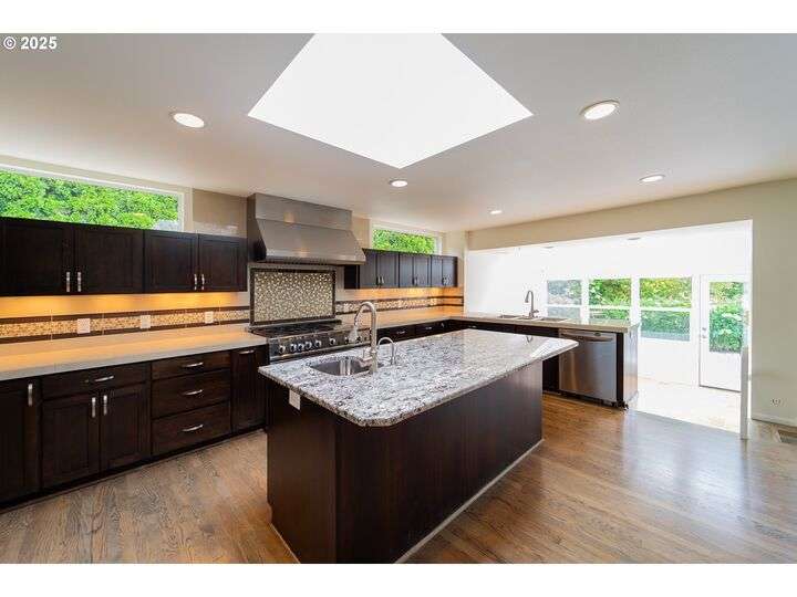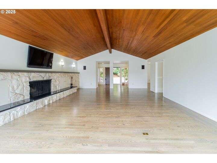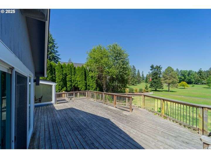 Seller's agent related to Seller. 18th hole Portland Golf Course views with brand new oversized grass yard! Timeless elegance and modern comfort with this remarkable day ranch home in the heart of the esteemed Portland Golf Club community. Built in 1970,this architectural gem boasts 4 bedrooms, 3.5 baths, and a sprawling 4,951 square feet of living space, offering a sanctuary of luxury. Nestled on a generous.51-acre lot along the 18th fairway with prime golf-course views and oversized new lawn. Upon entering, you are greeted by the timeless allure of rich hardwood floors that guide you through the main level. The grand-sized living room features a stunning vaulted wood ceiling, large windows that flood the space with natural light, and a wood fireplace creating a warm and inviting ambiance. The remodeled kitchen with its sleek design and modern appliances flows seamlessly into the family room, complete with a wet bar, perfect for entertaining guests. The home offers both formal dining and a sunroom dining area overlooking the low-maintenance landscaped backyard complemented by abundant fruit trees. The expansive deck is ideal for hosting summer soirees and enjoying the serene views of the golf course. A spacious primary suite awaits, complete with a generously sized closet, walk-in tile shower, and jacuzzi tub. Two additional bedrooms on the main level provide ample space for or guests. The lower level offers flexibility and awaits your personal touch with a family room, kitchen, and French doors leading to the garden patio. A guest suite provides comfort and privacy while abundant storage ensures effortless organization. With a two-car garage and move in ready condition, this home is a rare find offering opportunity to live in one of Portland's most sought-after locations with the added benefit of Washington County taxes.