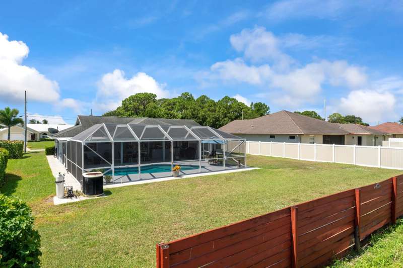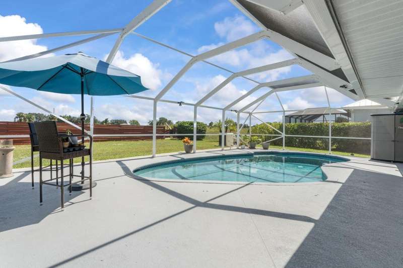 !! PRICE DROP & NEW ROOF INCLUDED !!! This is the deal you've waited for in Port St. Lucie. 3-bedroom 2-bathroom 2-car garage pool home in quiet location offers peaceful living with convenient access in Port St Lucie, minutes from major highways, schools and pristine beaches, shops, restaurants, and medical in Tradition!! Stunning home C-24 canal frontage. White granite kitchen, laminate & tile flooring. Screened patio, in-ground heated pool with plenty of yard space. Triple sliding doors and a pass-through kitchen window make poolside entertaining easy. 2025 installed pool screens. Accordion shutters, automatic garage door, well-based irrigation system, NO HOA restrictions. All measurements believed accurate but not guaranteed.