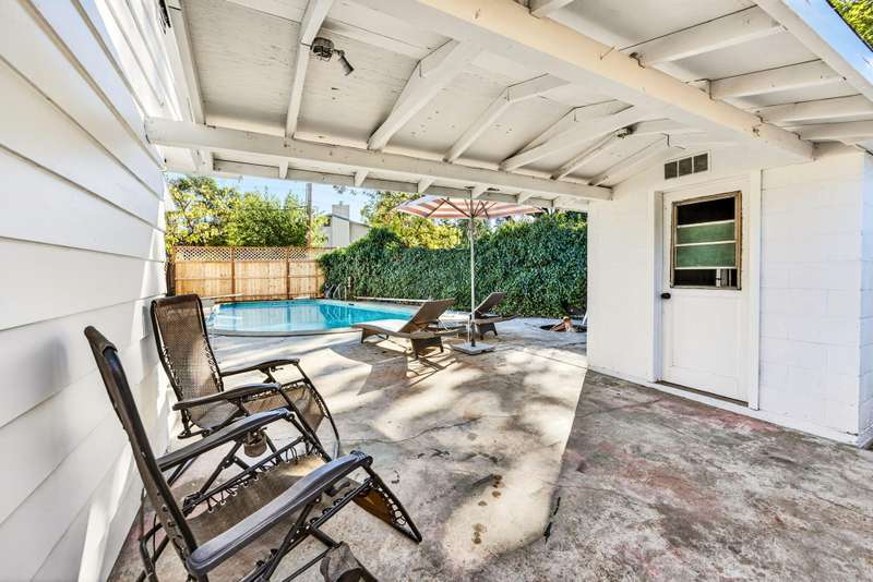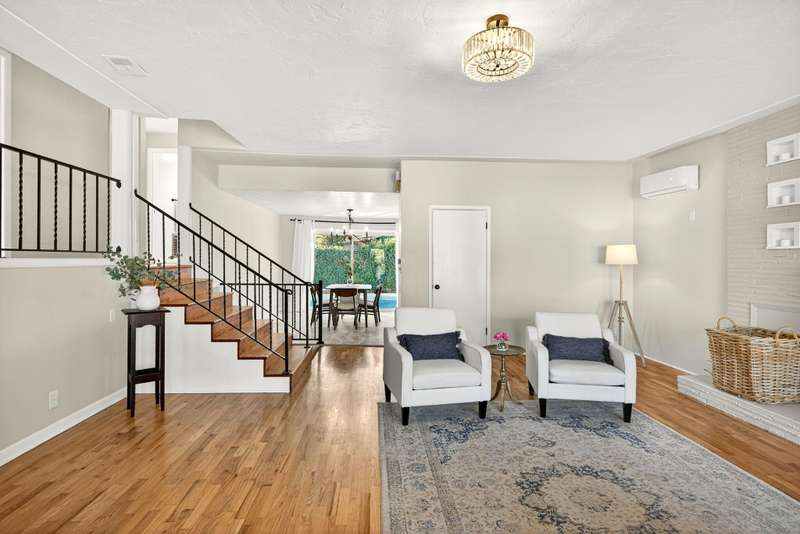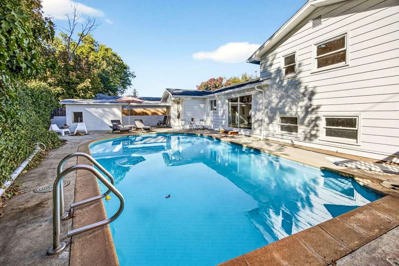 Remodeled mid-century gem you won't want to miss! This welcoming 3 bedroom, 3 bath home offers 1,886 sqft of stylish & functional living space, plus a 782 sqft bonus room with separate entrance, water heater, and plumbing- so many possibilities! Enjoy a spacious family room with gas fireplace, separate living room, formal dining with pool views, and a breakfast bar for casual meals. The kitchen features plenty of storage, new stainless appliances, and a sink window overlooking your backyard oasis. Beautiful refinished hardwood flooring, new luxury vinyl tile, fresh interior/exterior paint, new lighting, door hardware, electrical panel, ductless heat & air system, and newer roof make this home move-in ready! Outside, relax by the fabulous inground pool on the fully fenced 0.14-acre lot- you'll be set for next summer's fun! Includes pool equipment shed w/extra storage and 1-car garage with new garage door. This home blends timeless charm with modern updates—schedule your tour today!