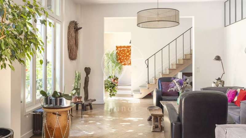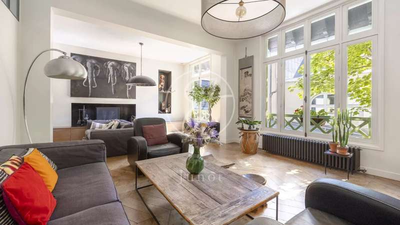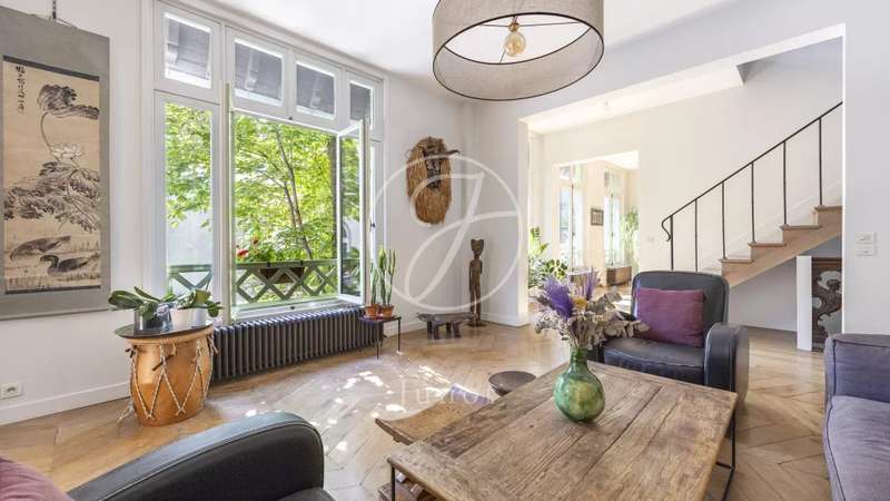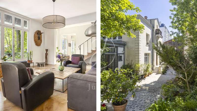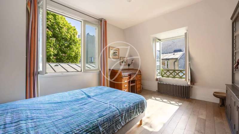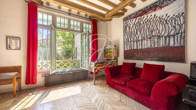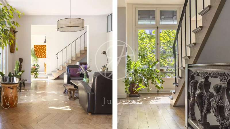 Close to shops and the metro, nestled in one of the most sought-after condominiums in Les Abbesses. In absolute calm, this delightful family home with character, with a surface area of 237.12sqm loi Carrez and 318.08sqm on the ground, offers spacious, sunny accommodation over four levels. The English courtyard features a large sports room, boiler room and cellar. The first level features two bedrooms and a dressing room. The second level features a vast living space with fireplace and a dining room with kitchen. Finally, on the top floor, three bedrooms, including a master suite with shower room and dressing room, and a bathroom. Exclusive use of a small terrace. Plenty of storage space. Exceptional property, rarely available for sale. EXCLUSIVE.