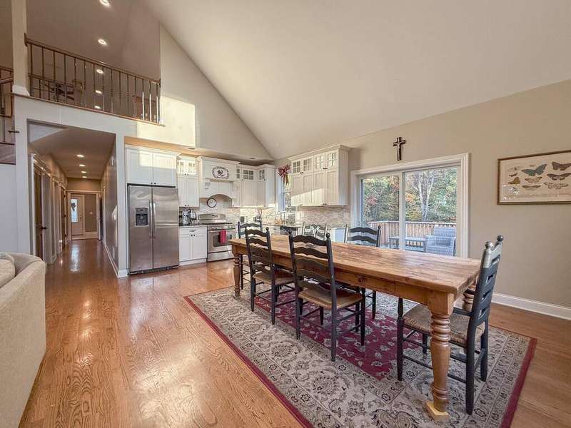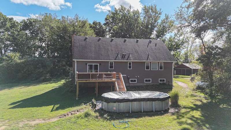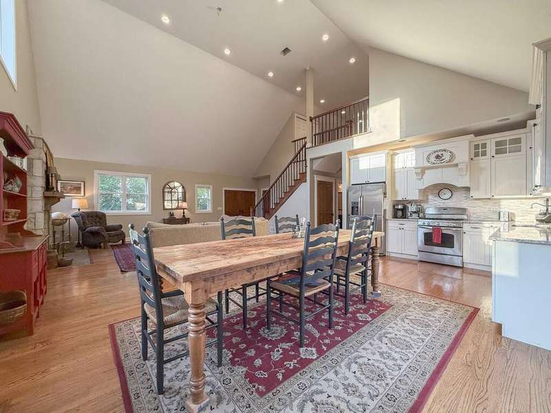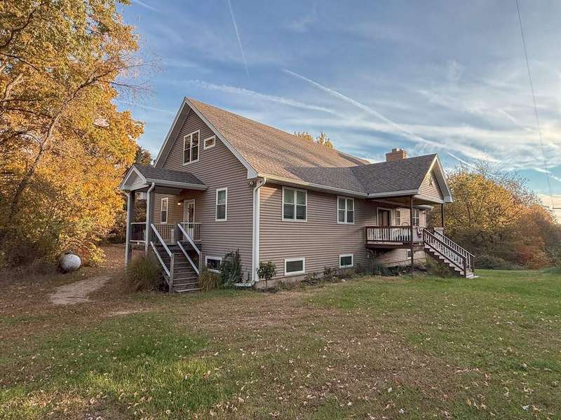 Lovely 3 bed/3 bath home featuring a versatile loft that could serve as a family room or an additional bedroom. Beautiful hardwood floors flow throughout, while vaulted ceilings in the kitchen and living room create a bright, open feel. The spacious living room is centered around a striking wood-burning fireplace, and the kitchen is equipped with stainless steel appliances, granite counters, and access to a deck overlooking the backyard. The large primary suite offers two closets and a private bathroom featuring a walk-in shower, double sink vanity, and a relaxing clawfoot bathtub. A full daylight basement provides plenty of potential for future living space or storage. Outside, you'll find a 40x36 pole barn with cement floors and electricity-perfect for hobbies, storage, or workshop needs. Added convenience comes with access to Midwest Energy's fiber internet. Schedule your private showing today!
